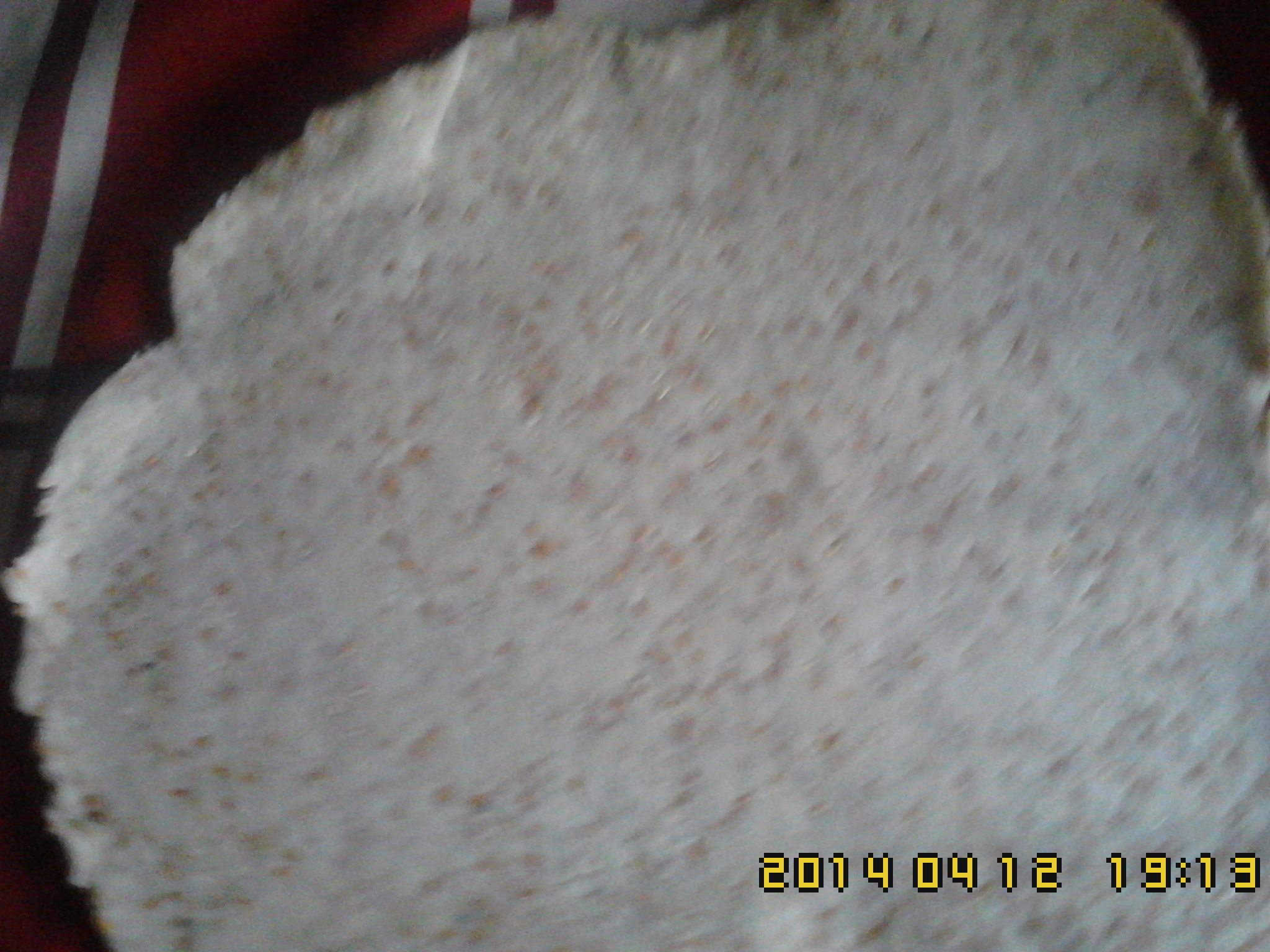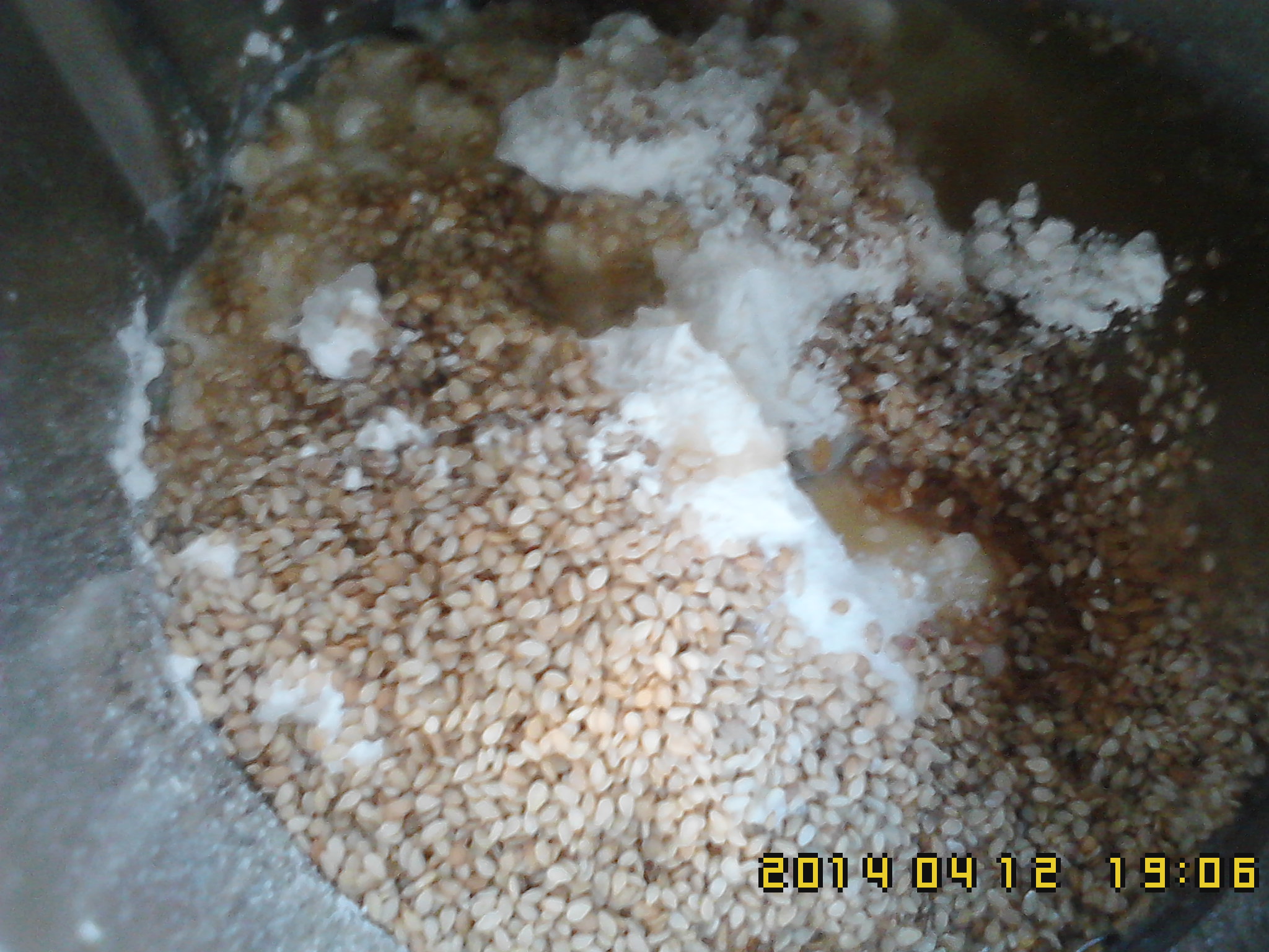 1) No copo,óleo,farinha cúlinaria,água,flor de sal,sementes de linhaça,sésamo,fermento padeiro, 15s-V6.
