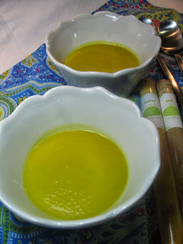 Coloque a cebola, o aipo, o alho francês e o azeite no copo da Bimby e programe 5 segundos, velocidade 5. Baixe os resíduos agarrados ao copo e adicione o caril e o açafrão e programe 5 minutos, varoma, velocidade 1.