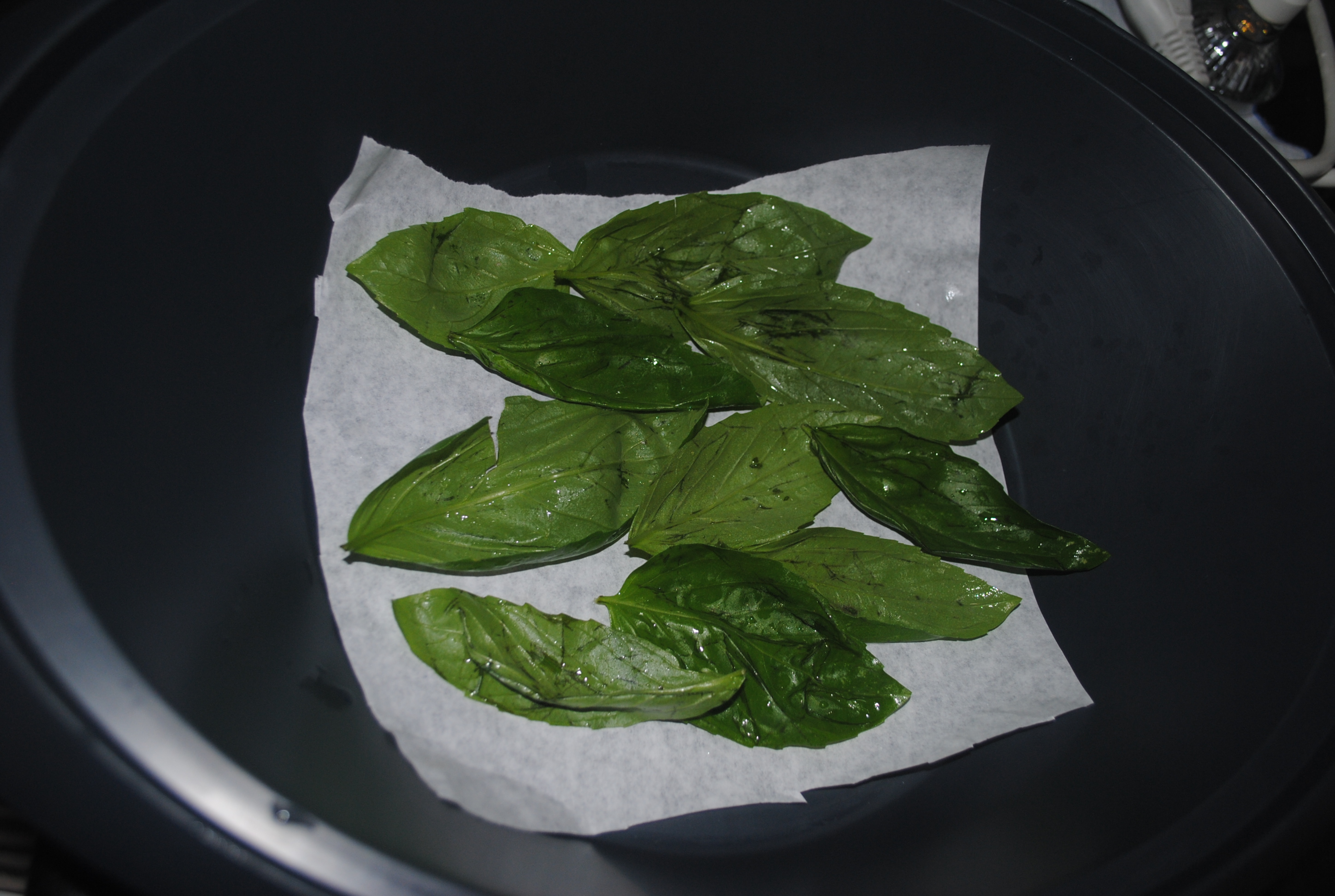 Na Varoma forrada com papel vegetal colocar as folhas de manjericão.