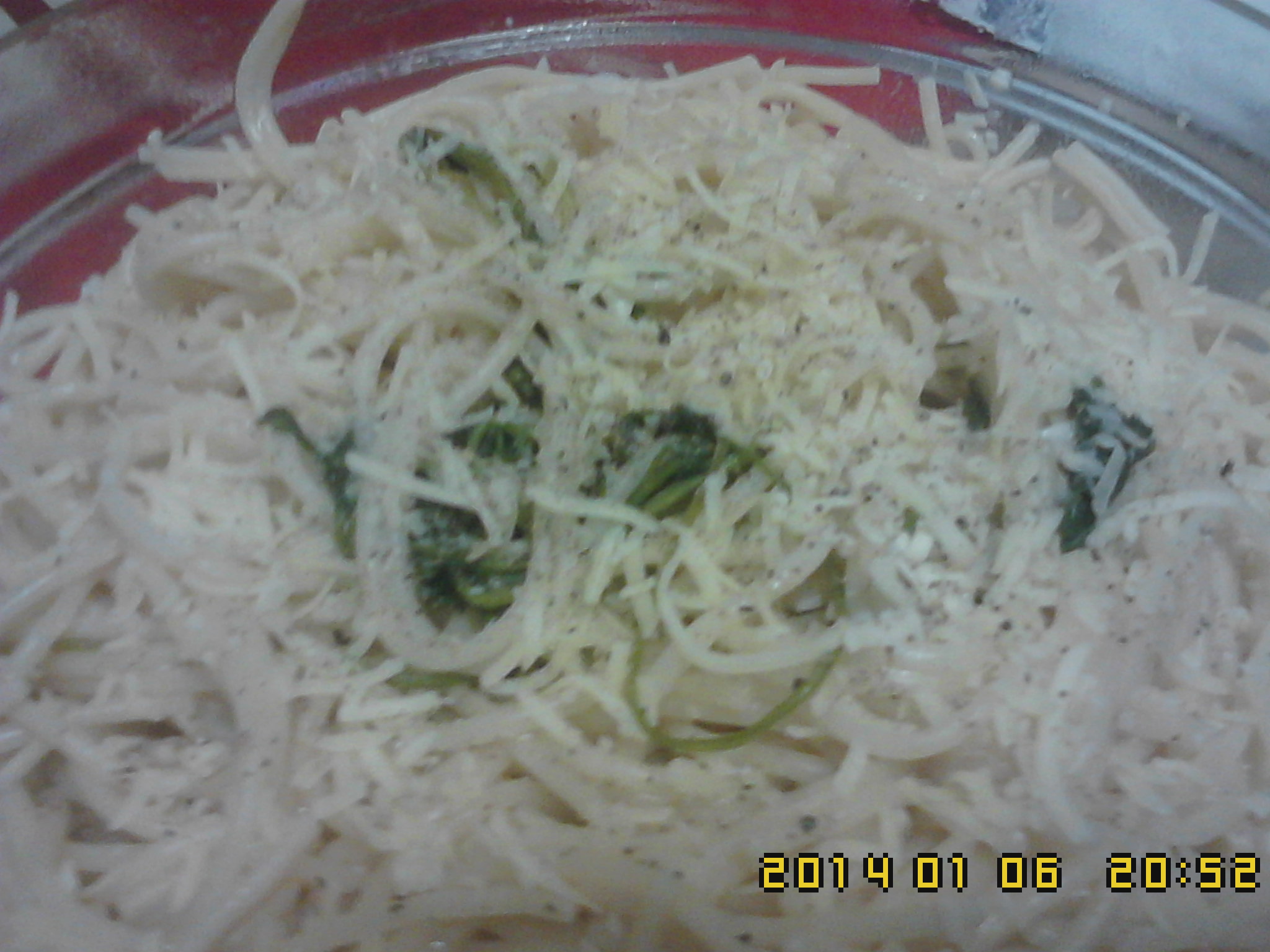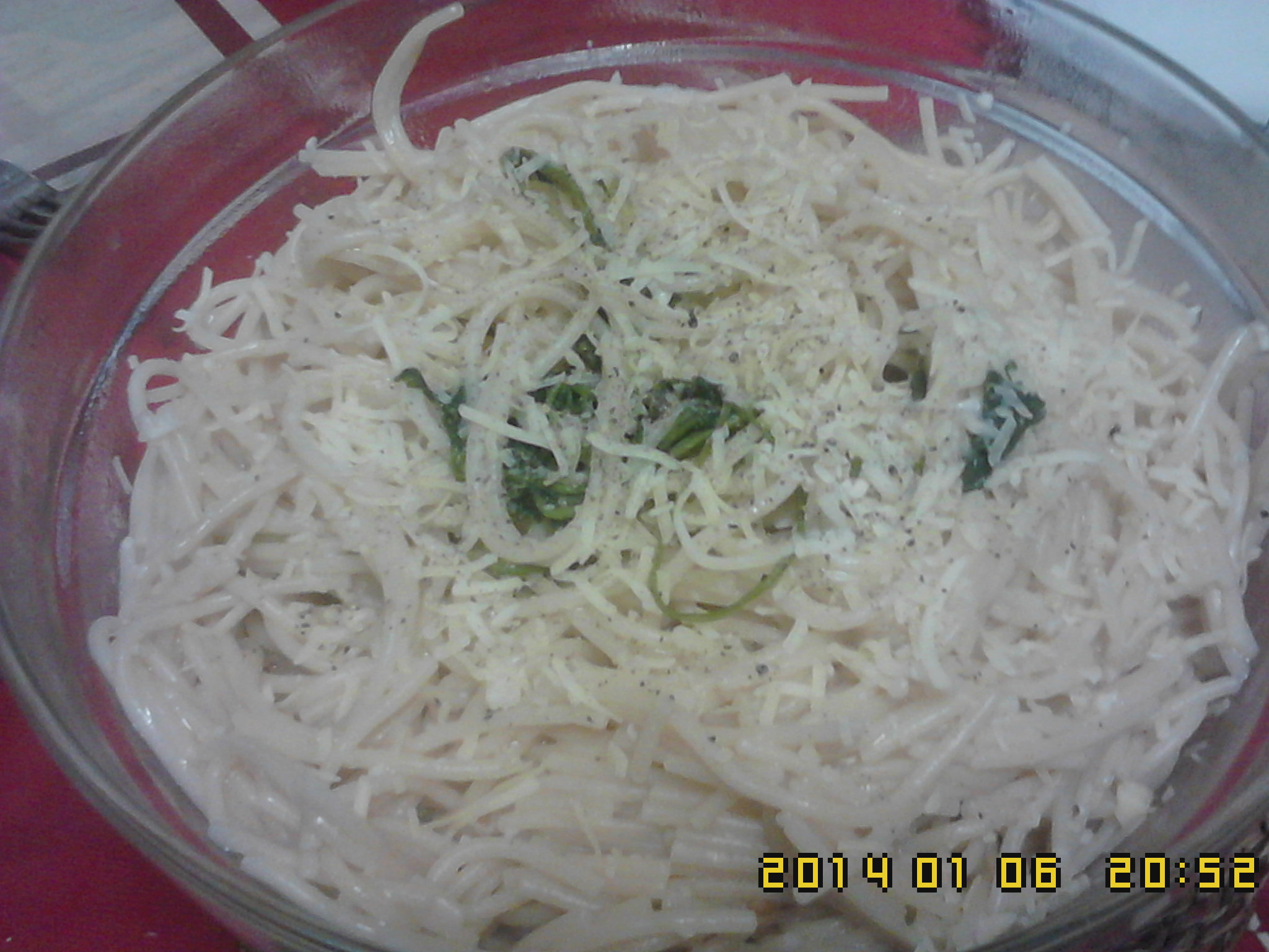 3)depois de estar pronto,ponha numa travessa,ponha em cima o queijo ralado e a pimenta preta.Bom apetite.