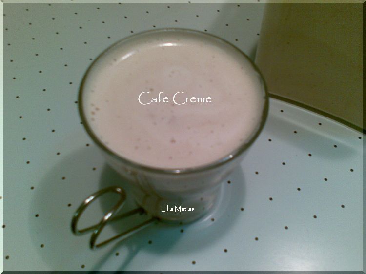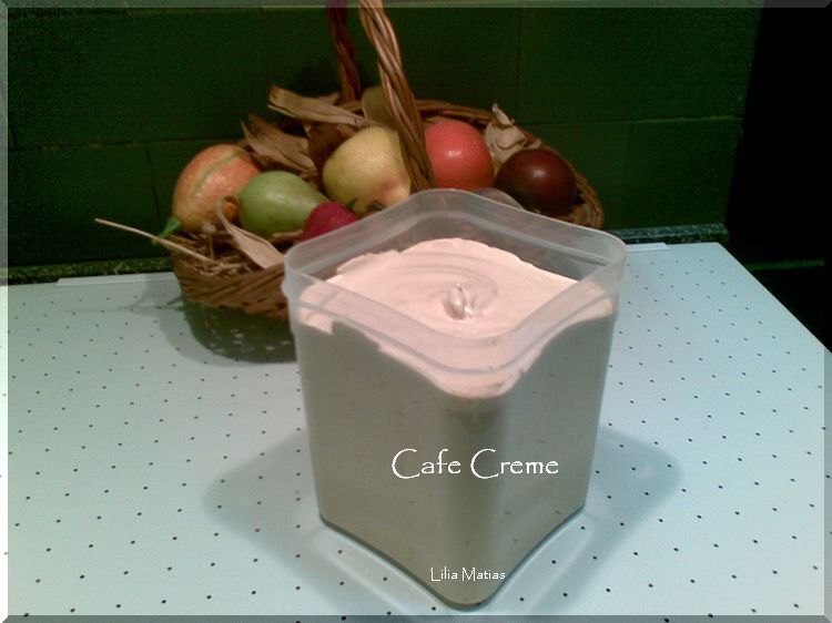 Nota: A mistura vai mudando de côr enquanto a Bimby a prepara até ficar com uma côr clara. A mistura após preparação duplica de volume. O Café Creme pode ser usado em leite quente (dissolução facil. Basta mexer com a colher) ou leite frio (de mais dificil dissolução. Pode deitar uma chavena de leite na Bimby, junte uma ou duas colheres de sopa do café creme e programa 10 a 15 segundos, velocidade 4. Sirva.)