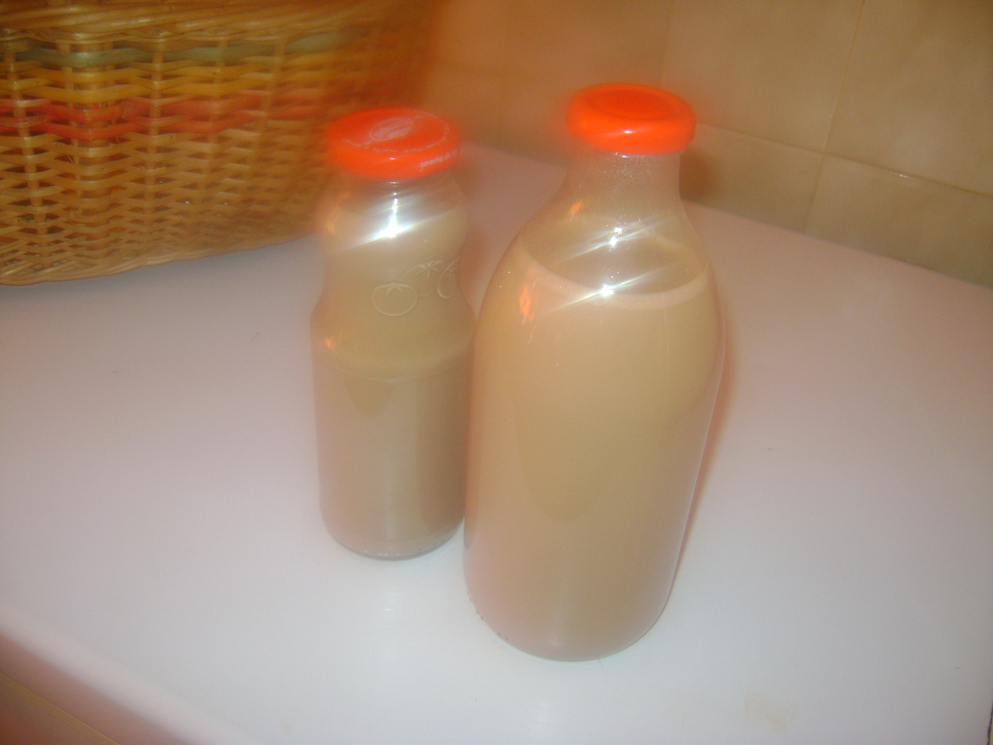 Boa tarde, este verão o meu filhote só queria ucal e comprei das novas garrafinhas de plástico com tampa e depois de vazias lavei-as e guardei-as para fazer o ucal da Bimby será que as posso utilizar ou é melhor em garrafas de vidro? E quanto tempo dura este leite no frigorífico sem estragar?