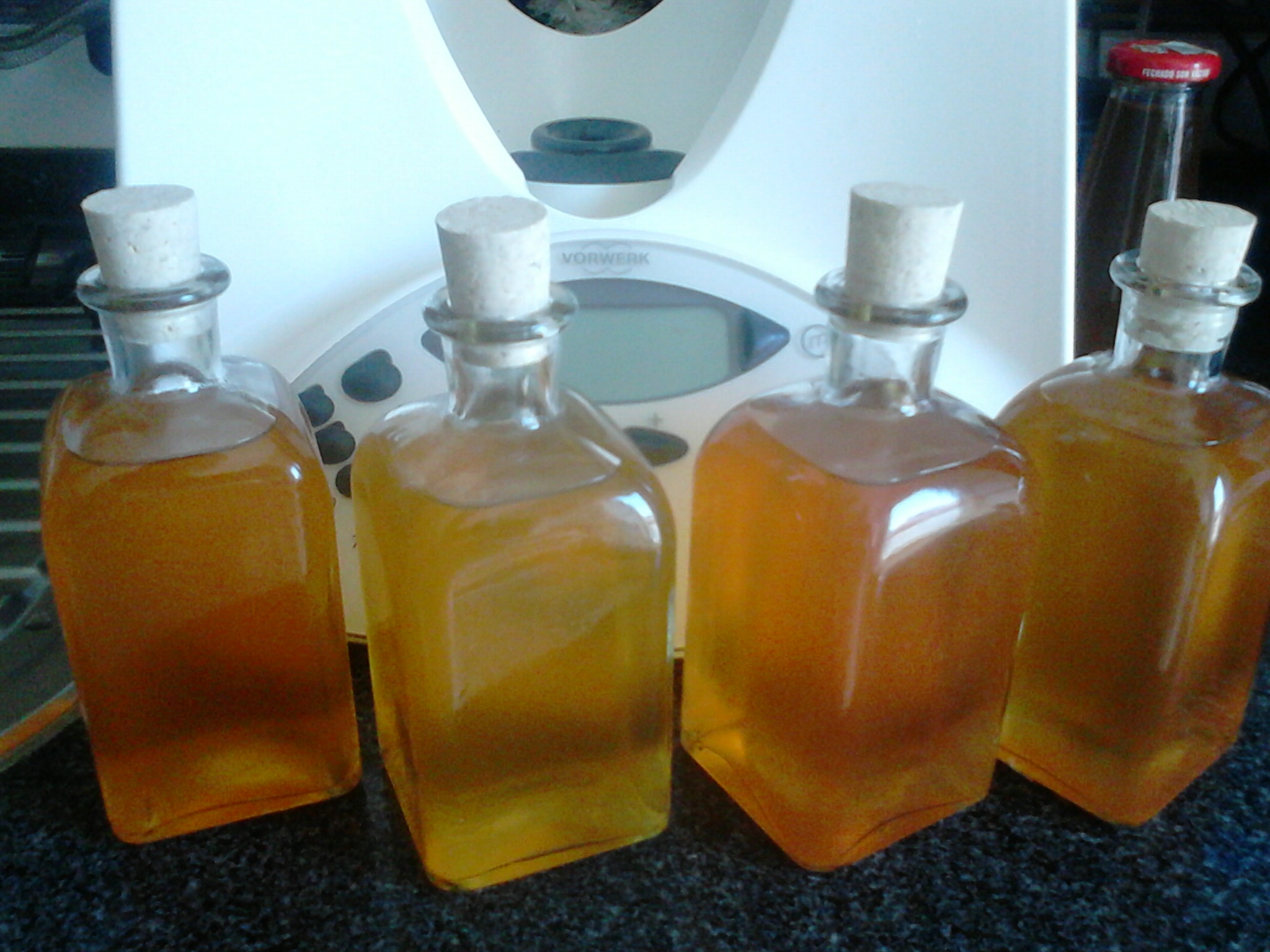 nota: no caso de o licor ficar muito claro, coloca-se 1 gota de corante vermelho de modo a ficar mesmo cor de laranja!