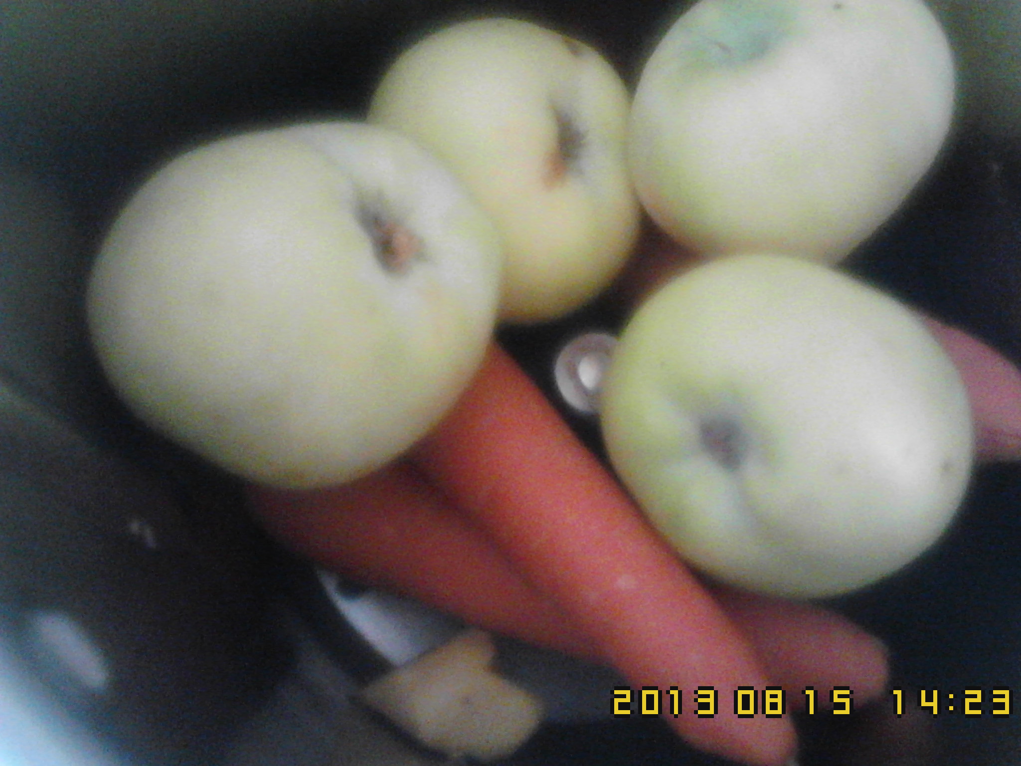 1)Por as maçãs,cenouras,gengibre no copo.Pique 10s-V5.2)Sem tirar no copo os legumes e a fruta,coloque o gelo,pique 10s-V6.3)Estando as coisas no copo,a seguir,coloque as 8 laranjas cortadas,sem casca,se não couber,vai colocando no copo e aumente a velocidade até chegar ao V10,durante um minuto.Sirva e coloque no copo,uma folha de hortelã.Bom proveito