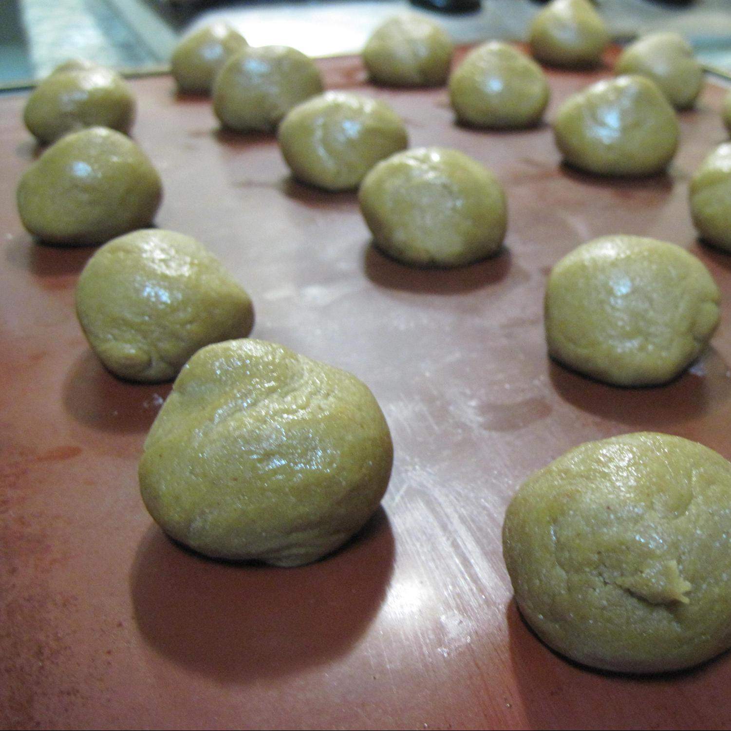 Faça bolinhas e coloque sobre um tapete de silicone ou papel vegetal e leve ao forno até estarem cozidas ( +- 25 mnts ).