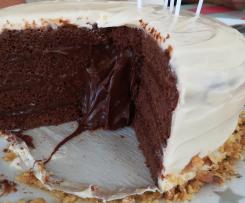 - Barrar todo o bolo com a cobertura branca e decorar a gosto com noz picada grosseiramente.