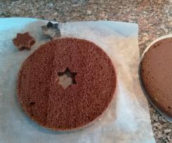 - No prato de servir, coloque um dos bolos e com um cortador de bolachas retire o centro.