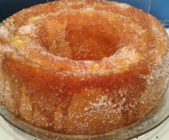 Cubra com Glacê ou simplesmente polvilhe com açúcar como se pode ver na imagem no inicio da receita em que foram usados 4 ovos e uma forma tamanho 22.