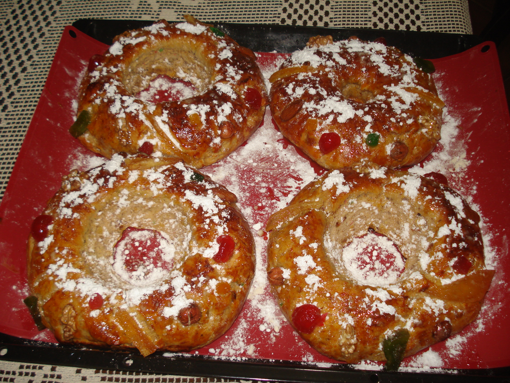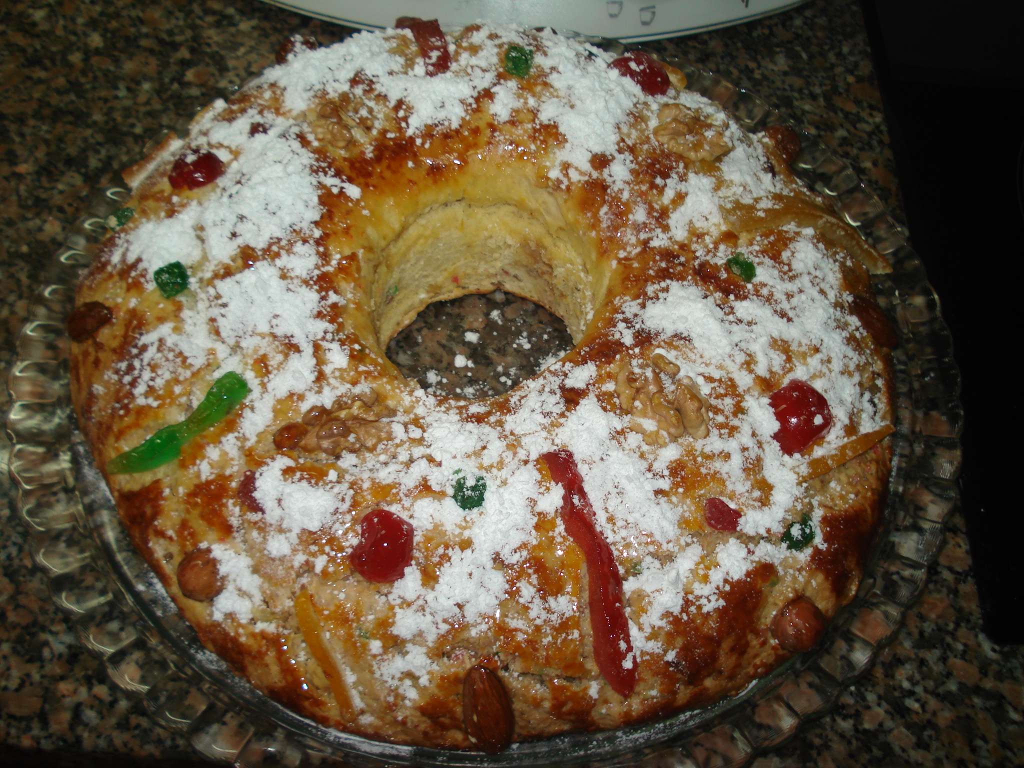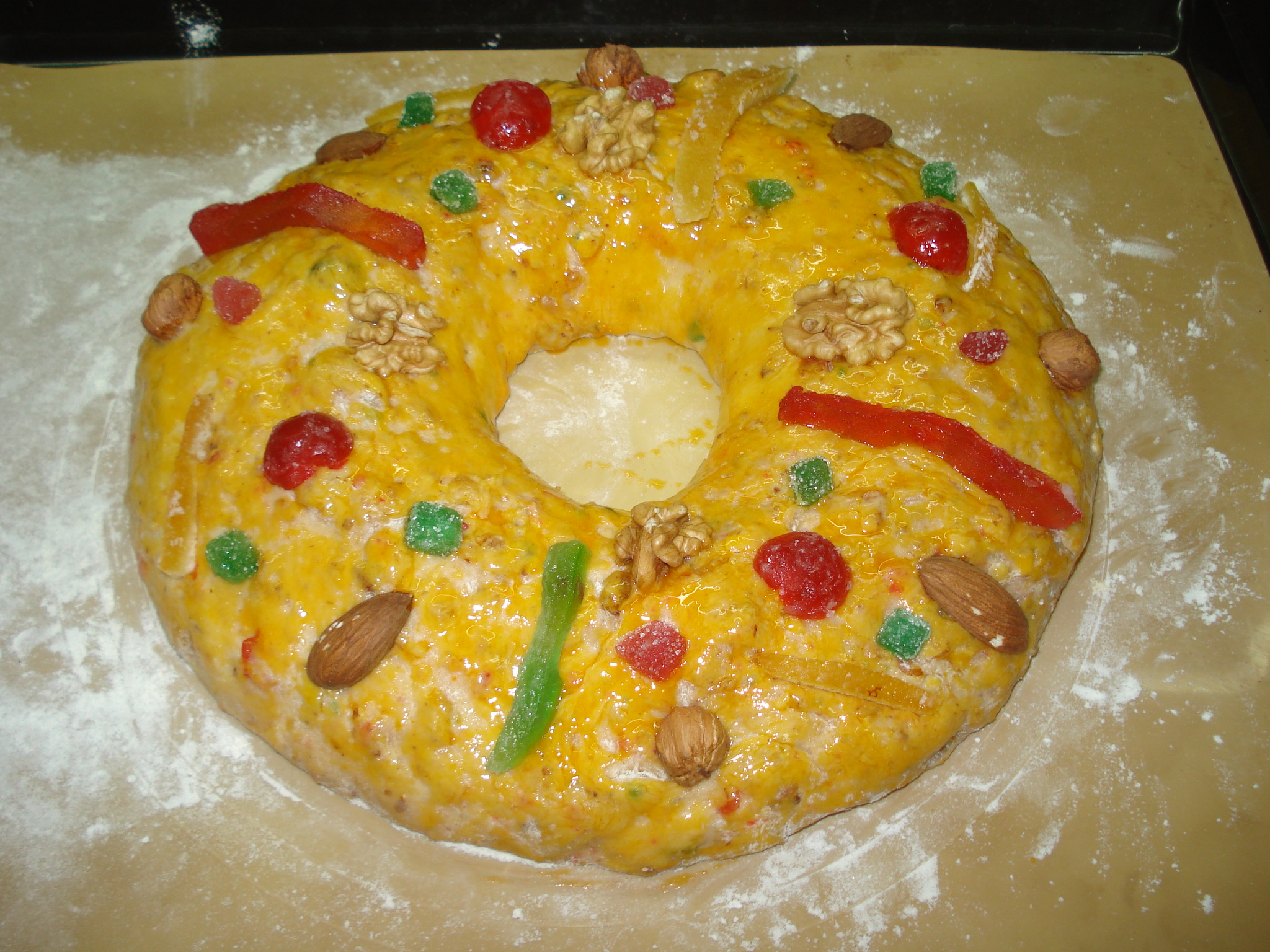 Nota:Aconselha-se a colocar um recipiente resistente ao calor no meio da massa do bolo-rei para que esta não feche.