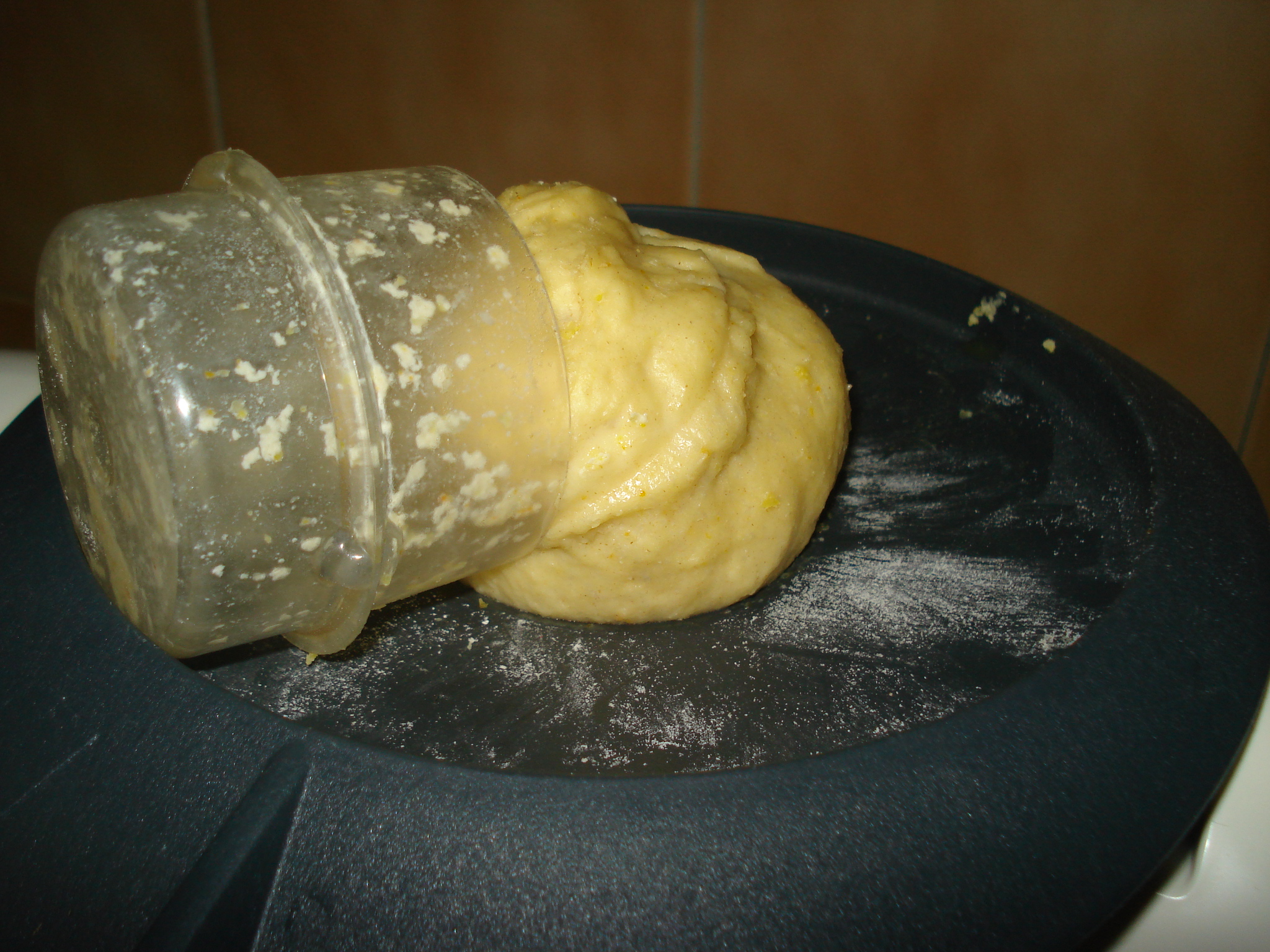 . Verifique se forma uma bola que não fique agarrada às paredes do copo. Se não for o caso, pare a bimby, polvilhe as paredes do copo com um pouco de farinha e volte a amassar uns segundos na mesma velocidade