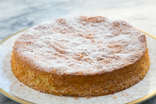 Deite a massa na forma e leve ao forno pré-aquecido cerca de 35 mnts. Retire e deixe arrefecer. Passe uma faca em toda a volta do bolo, ajudando-o a soltar-se da forma. Retire o fundo delicadamente e coloque o bolo, com o papel vegetal, no prato a servir. Polvilhe com açúcar em pó antes de servir.