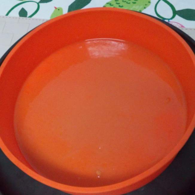 - Deite a mistura na forma, por cima do preparado da cobertura.