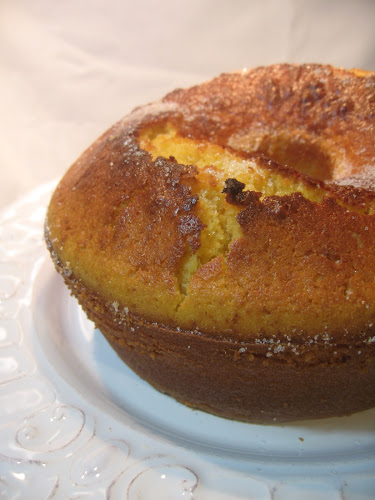 Deite a massa do bolo na forma e deixe cozer por 30 minutos. Nos últimos 5 minutos polvilhe a superfície do bolo com açúcar a gosto.