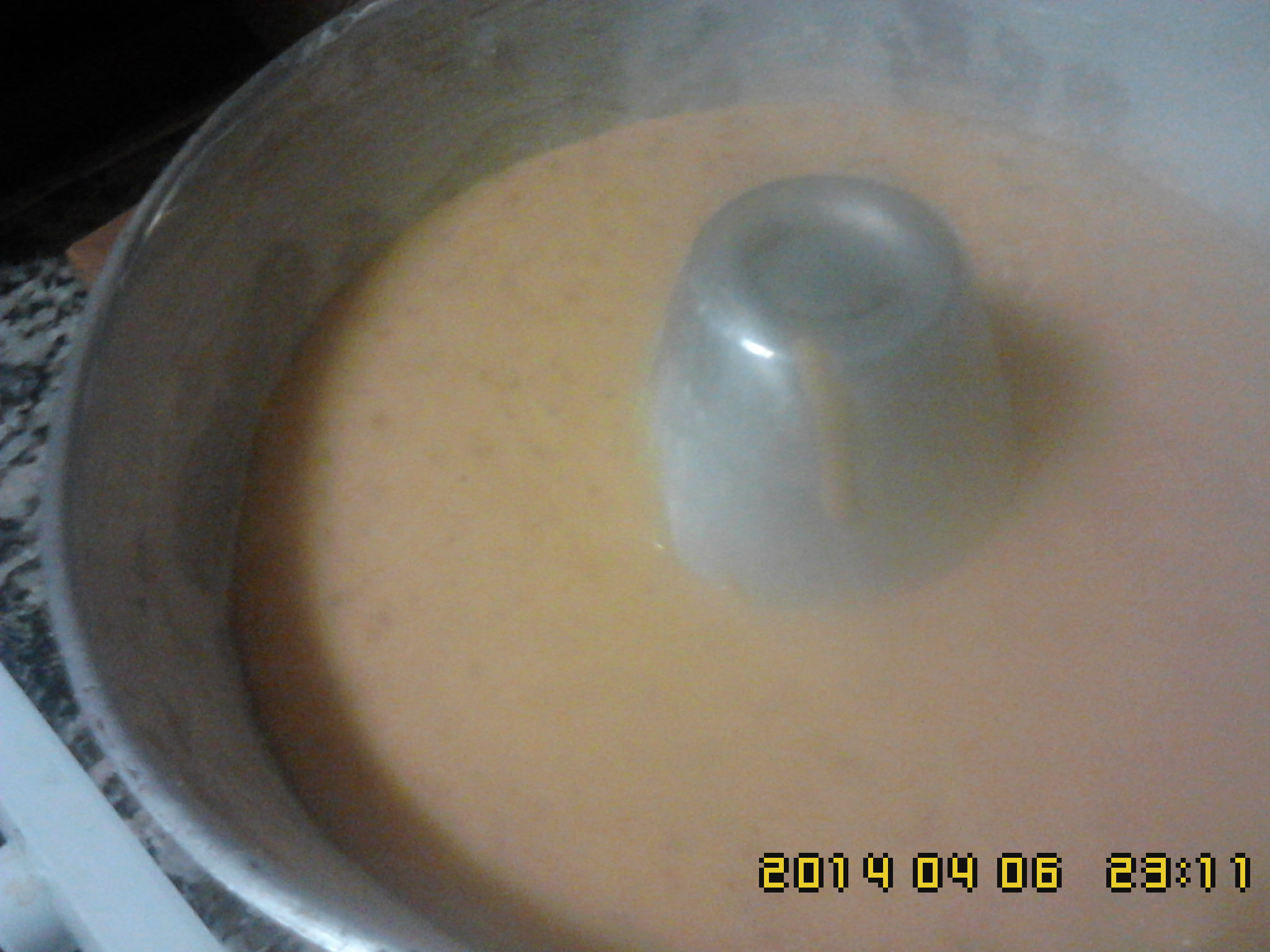 4)Por numa forma,com manteiga besunte e ponha,farinha polivorizada a seguir o preparado.