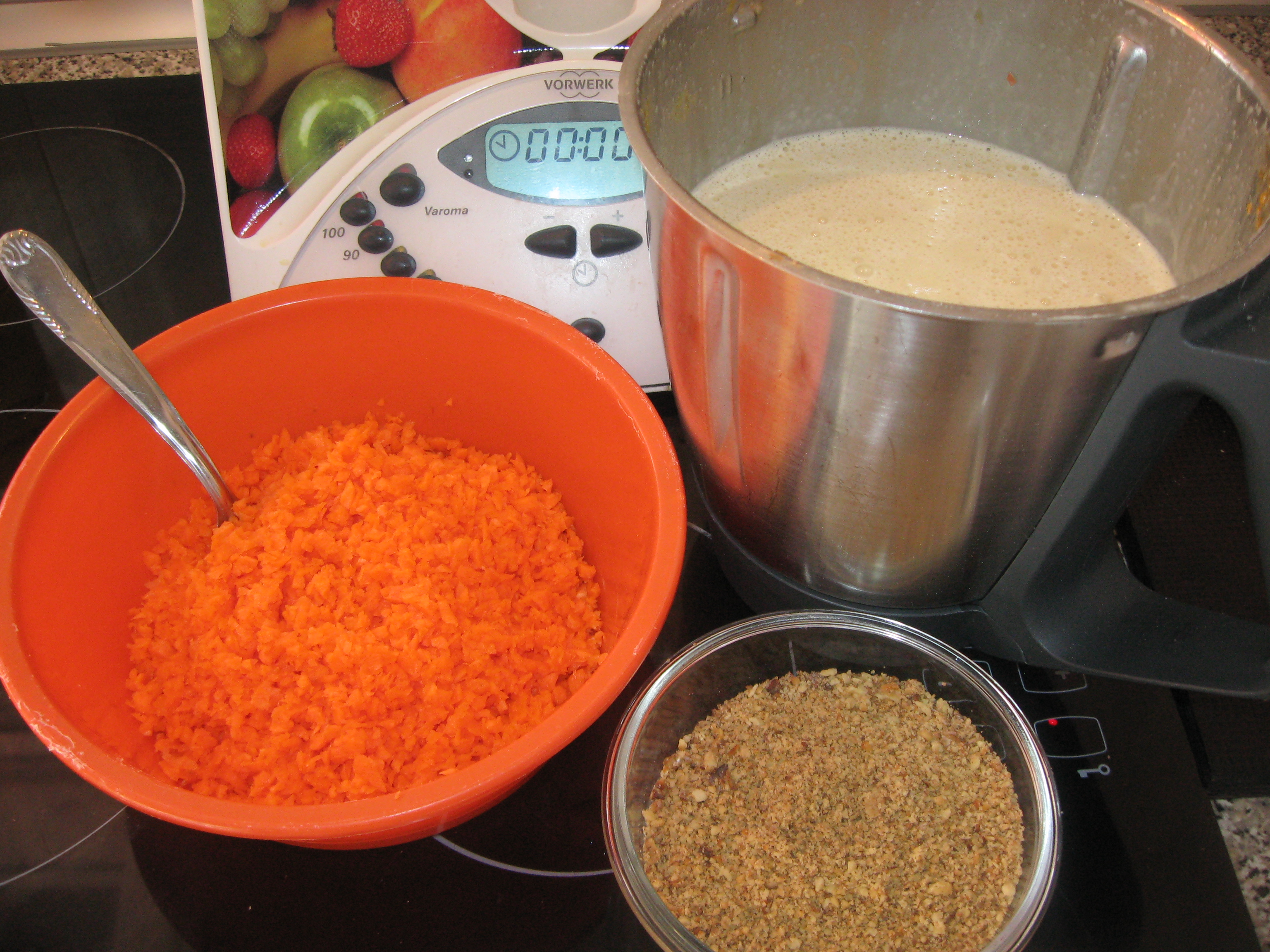 No fim juntar as nozes picadas e a cenoura e envolver com a espátula