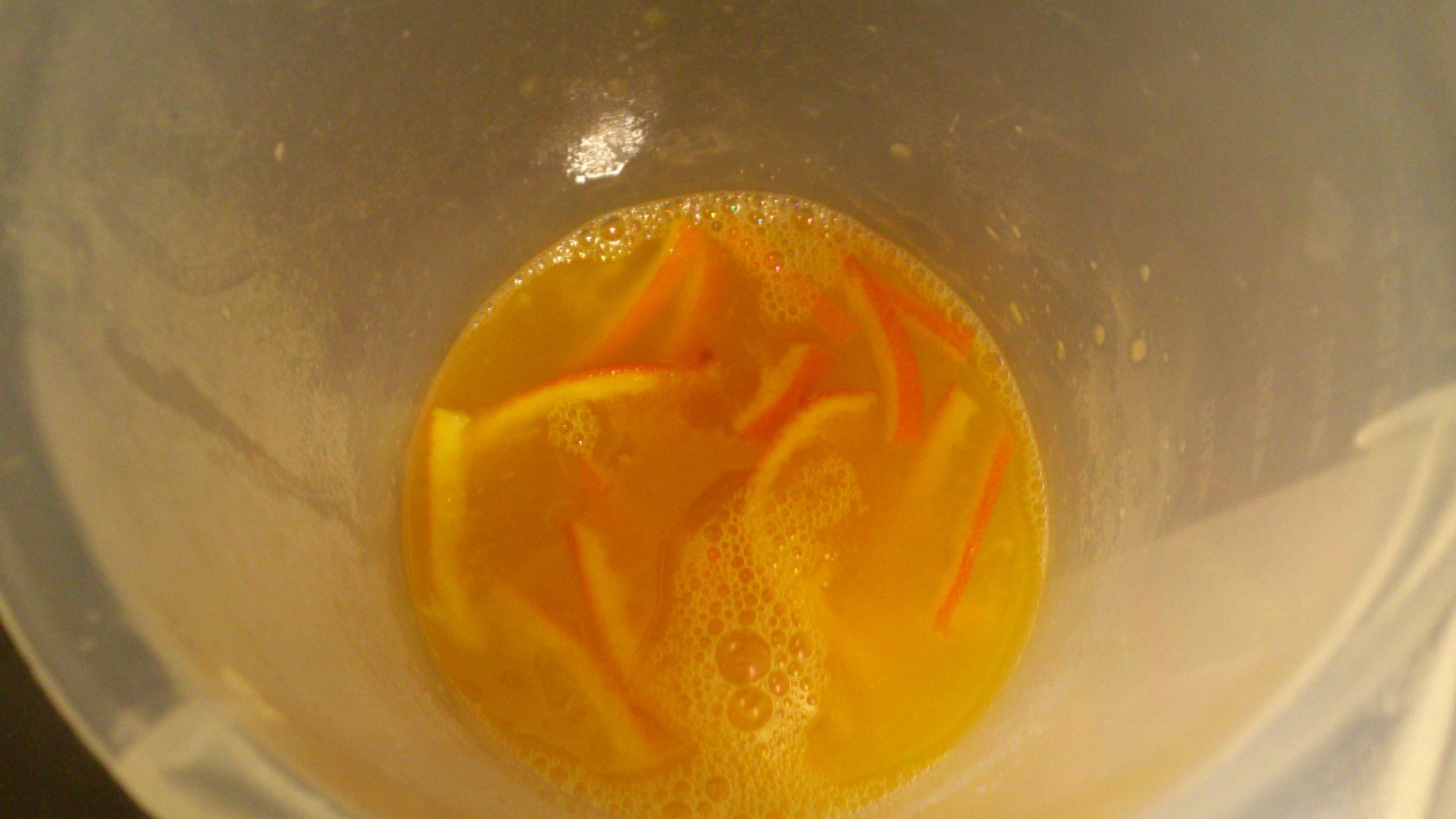 - 1 chávenade sumo de laranja ( 2 laranjas )
