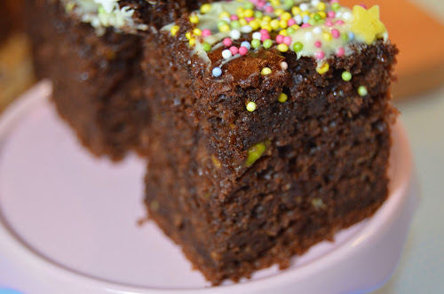 Deixe arrefecer. Depois de frio, derreta o chocolate branco, espalhe a gosto por cima do bolo e polvilhe com confetis a gosto. Deixe esta tarefa para as crianças, elas adoram participar.