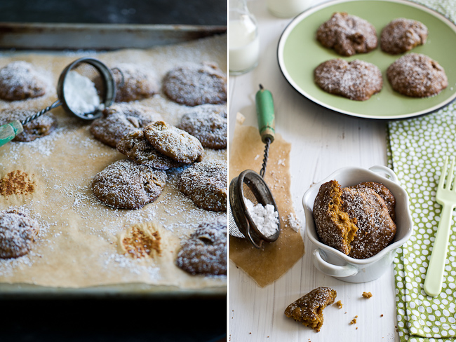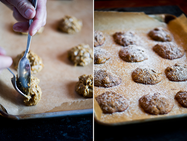 Leve ao forno pré-aquecido e coza cerca de 15 mnts ou até estarem firmes. Retire e deixe que atinjam a temperatura ambiente. Retire-as do tabuleiro com a ajuda de uma espátula e polvilhe com o açúcar em pó.