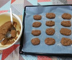 - Moldar as bolachas com a ajuda de duas colheres de sopa e colocar num tabuleiro forrado com papel vegetal.