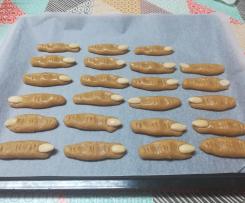 - Colocar as amêndoas nas pontas dos rolinhos, para fazer as unhas.