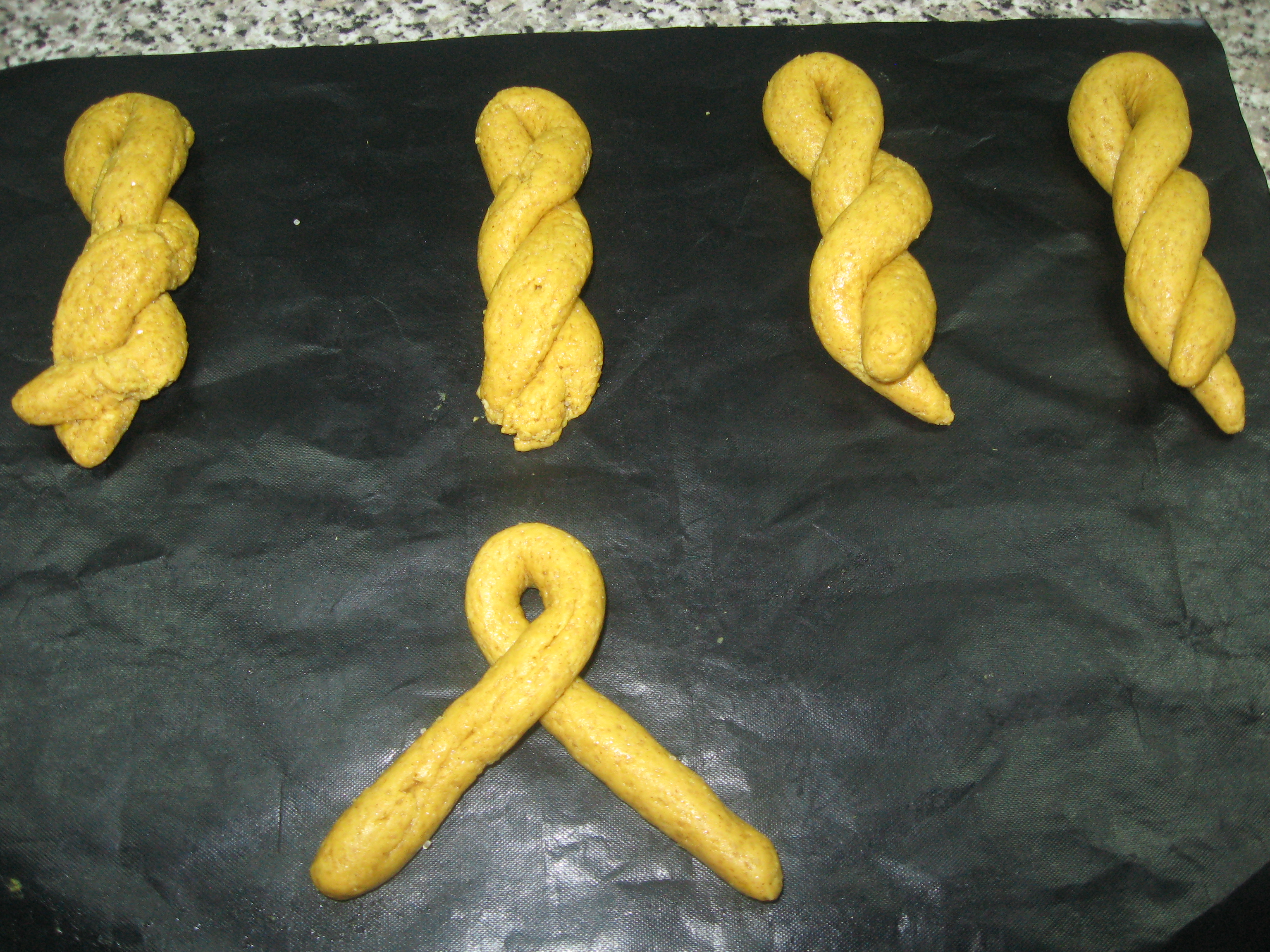 bolinha de modo a faze rolinhos compridosDobrar ao meio e