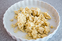 1. Comece por fazer a massa: coloque todos os ingredientes no copo e misture 1 mnt/vel 4. Barre uma forma para trate com cerca de 25cm de diâmetro. Coloque a massa na forma e use os dedos para a espalhar uniformemente, pressionando ligeiramente. Refrigere cerca de 1h. Em seguida leve ao forno, pré-aquecido a 180ºC, durante cerca de 25-30 mnts, ou até estar dourada. Retire e deixe arrefecer cerca de 15 mnts.