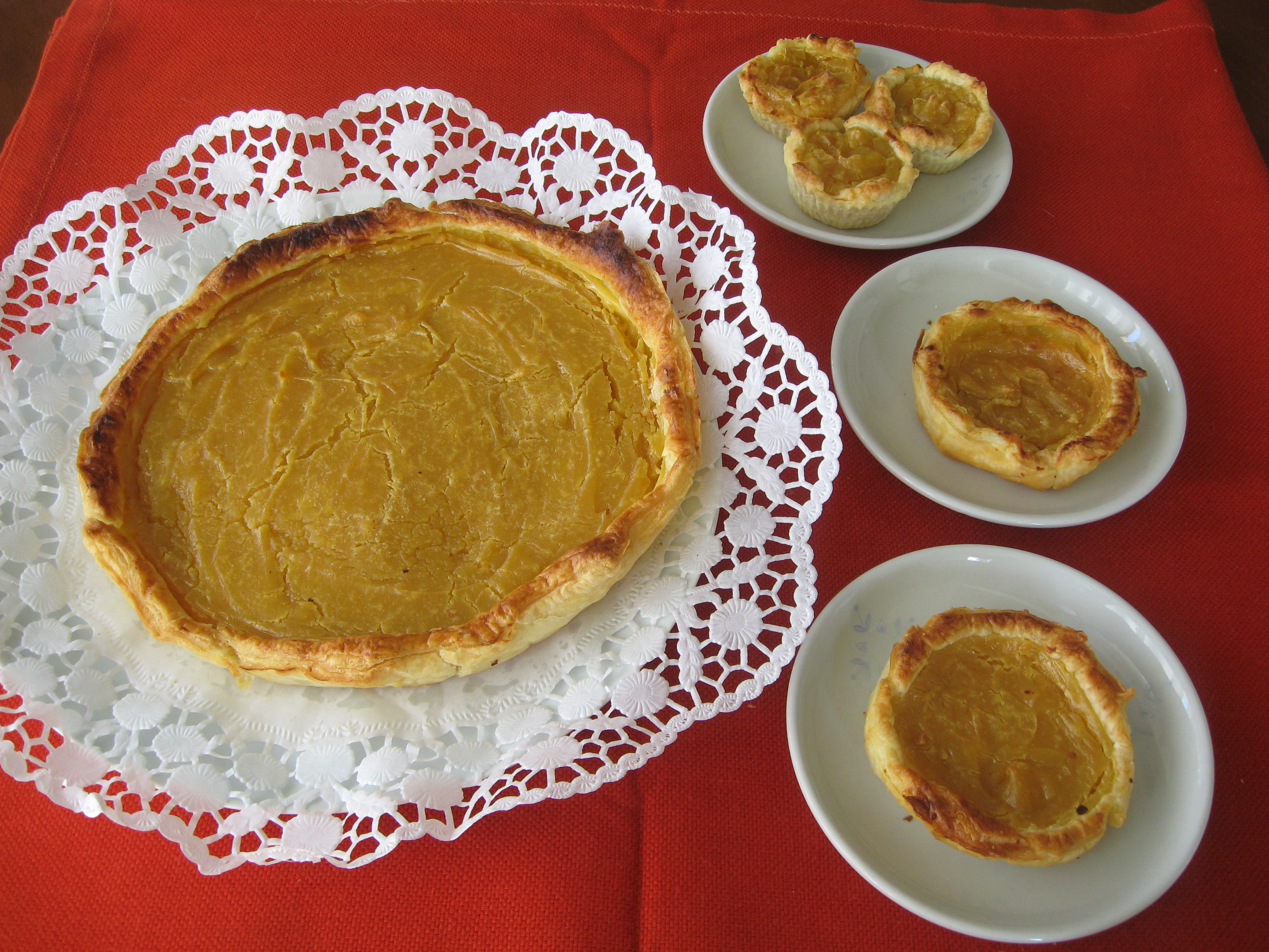 (Só tinha massa folhada rectangular e deu para esta tarte, mais 2 tartes individuais e 3 miniaturas)