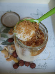 3. Antes de comer, distribua cerca de 2 colheres de sobremesa de bolacha em cada copo e 1 colher de sobremesa de frutos secos moídos por cima e finalize com a cajeta (20 gr) restante.