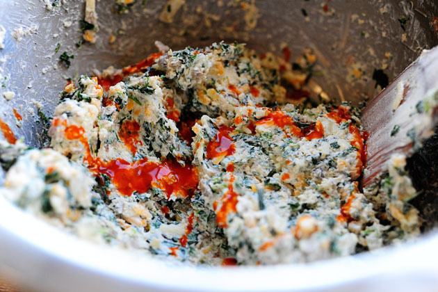 "Tampa fechada" limpo, misture o queijo creme, as natas, os queijos ralados, os espinafres, uma pitada de sal, uma pitada de pimenta, o picante e a mistura arrefecida de cogumelos e programe 15 seg/