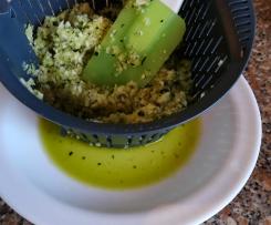 - Adicionar os ovos, as 120g de queijo e a courgette bem escorrida. Temperar a gosto com sal, pimenta e noz moscada e envolver tudo 20seg/vel.4.