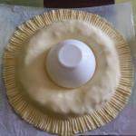 Colocar uma tigela no centro e cortar fatias com cerca de 3 cm a toda a volta.