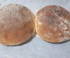 - Retire para uma superfície enfarinhada, forme 2 bolas e coloque num tabuleiro forrado com papel vegetal. Deixe levedar por mais 20 a 30 minutos.