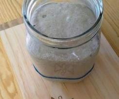 1. Colocar no copo todos os ingredientes e misturar 30 seg/vel 4. Retirar para um frasco de vidro, cubrir com um pano e deixar levedar por cerca de 8 a 12 horas dependendo da temperatura ambiente, se estiver calor o processo é mais rápido se estiver frio o processo é mais lento (idealmente entre 24-25ºC). Este passo normalmente não faço na bimby, coloco tudo dentro de um frasco e com um garfo bato muito bem. Depois tapo com um guardanapo de pano e deixo de um dia para o outro. No outro dia já deverá estar pelo menos com o dobro do tamanho e com borbulhinhas. Ou seja, pronto a usar.