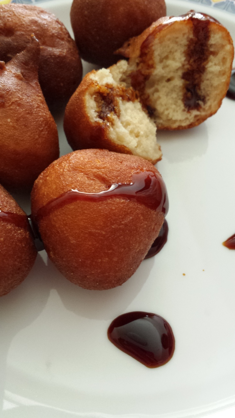 Aquecer o óleo, deitar um pouco da massa para confirmar a temperatura. Com duas colheres de sopa retirar um pouco da massa e dar uma forma arredondada antes de deitar no óleo.
