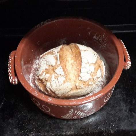 Usar um tacho de barro com tampa para cozer o pão.