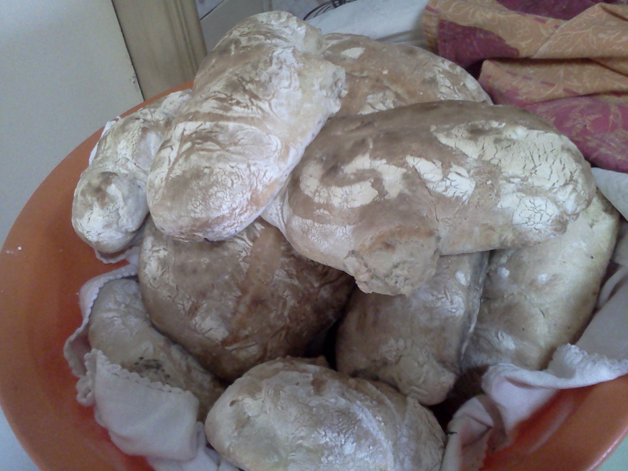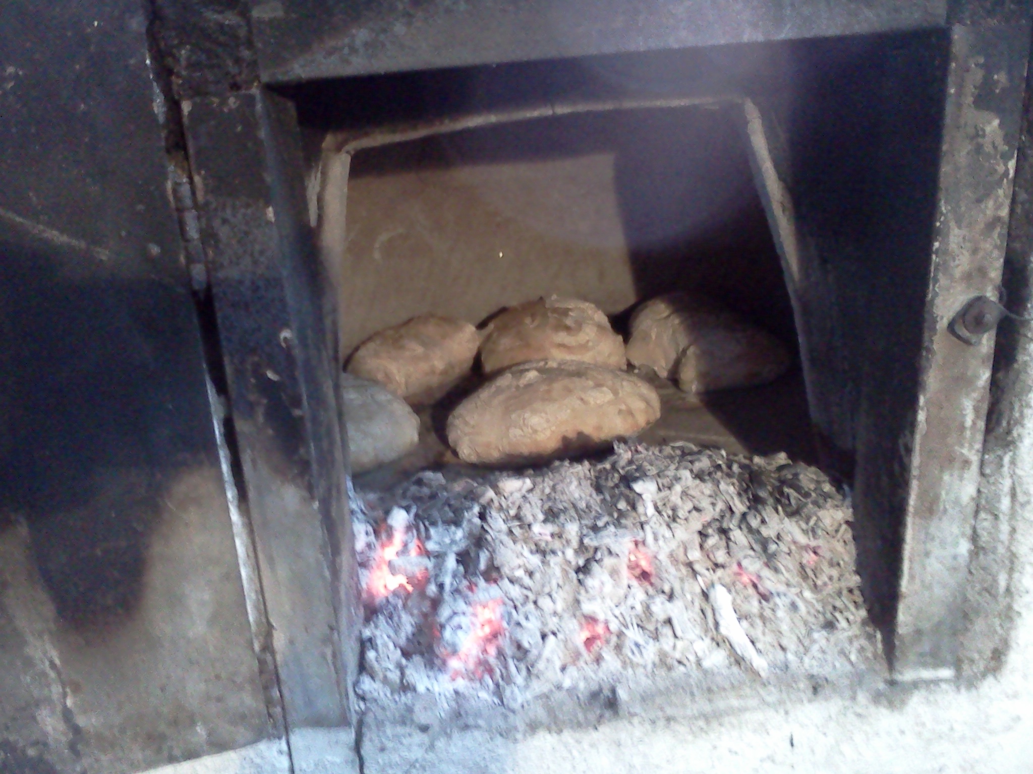 Fazer pequenos pães cerca de 350/400gr e cozer em forno de lenha 25/30 min (dependendo da temperatura a que se colocar o forno)
