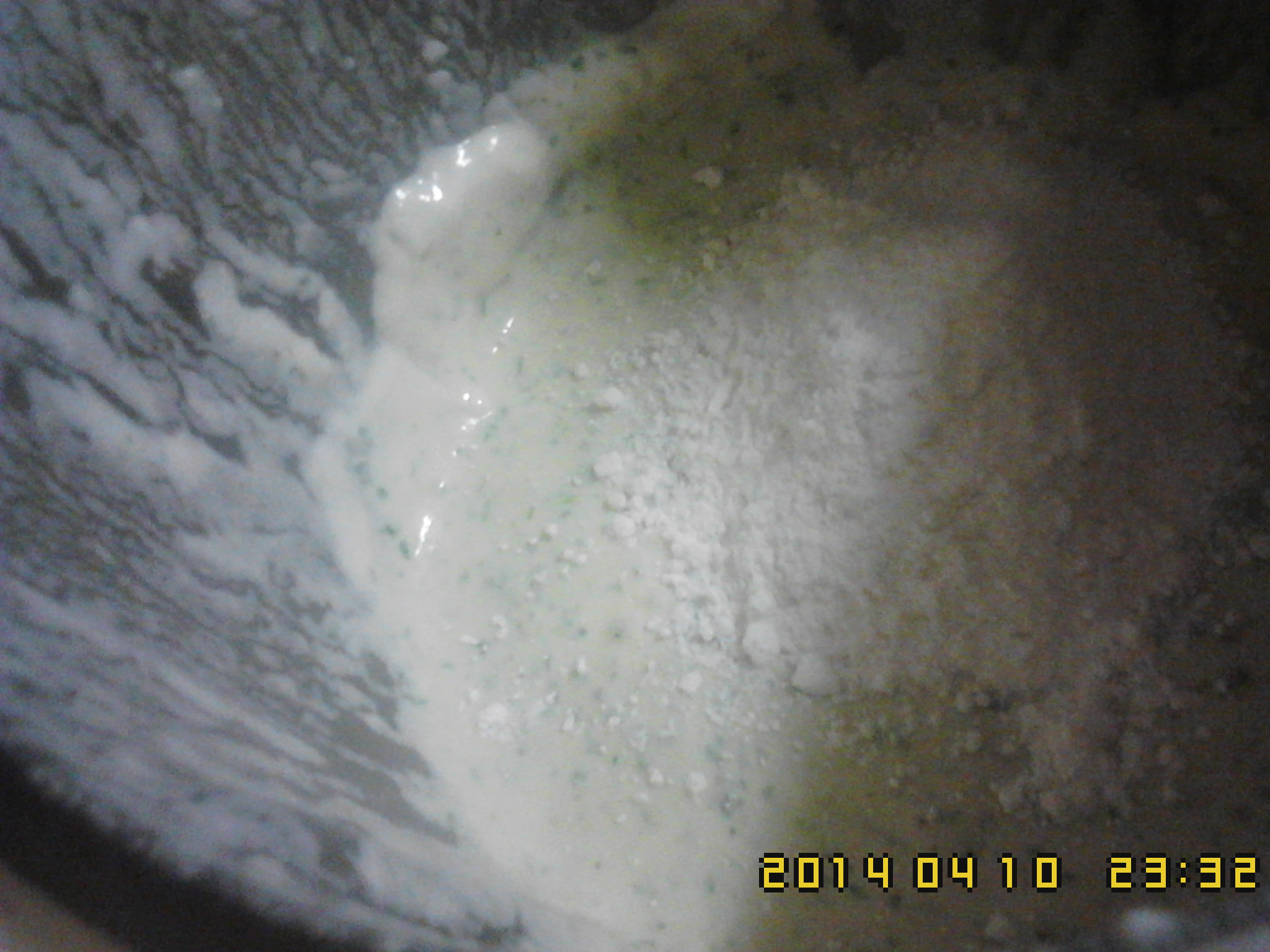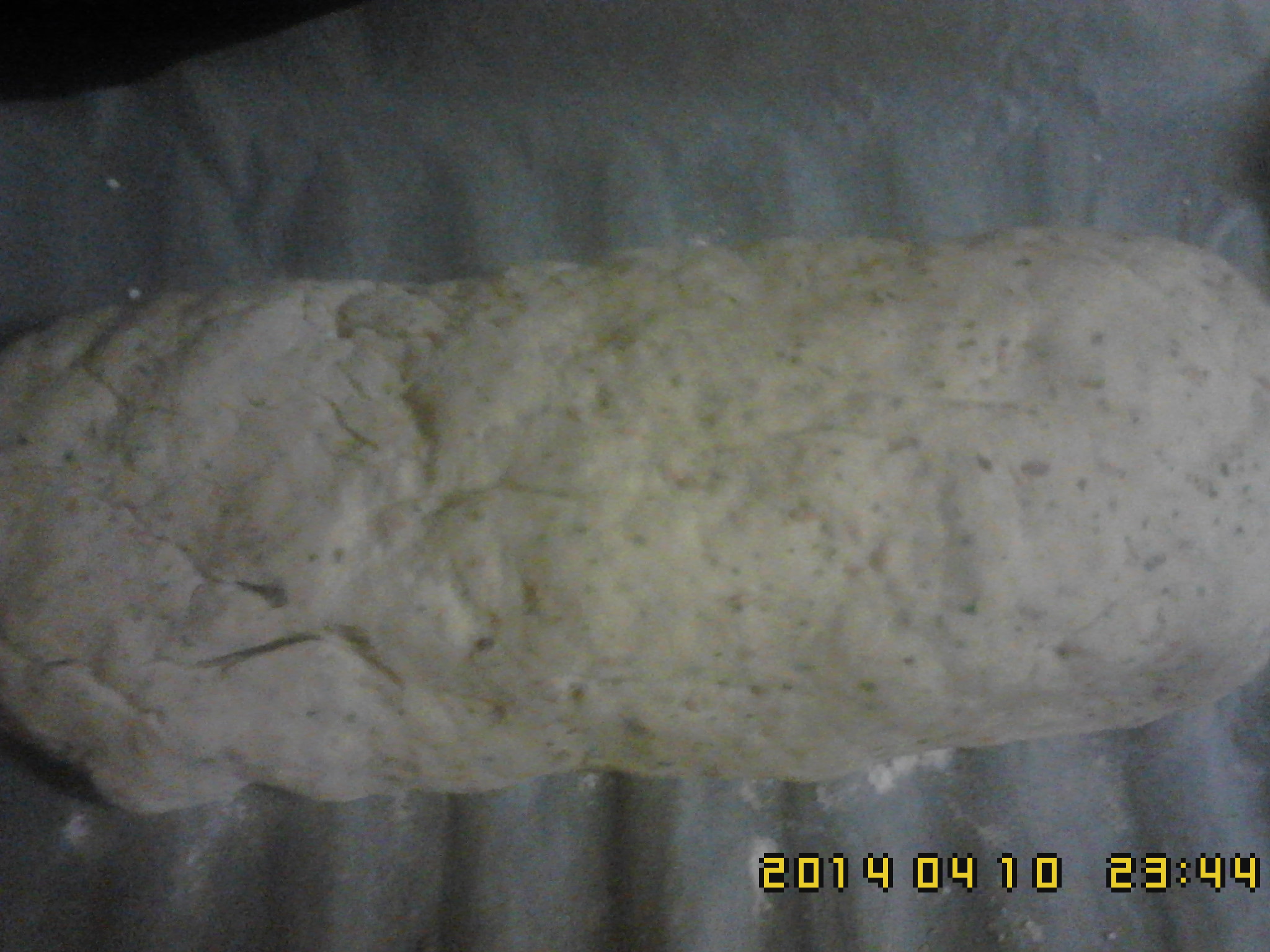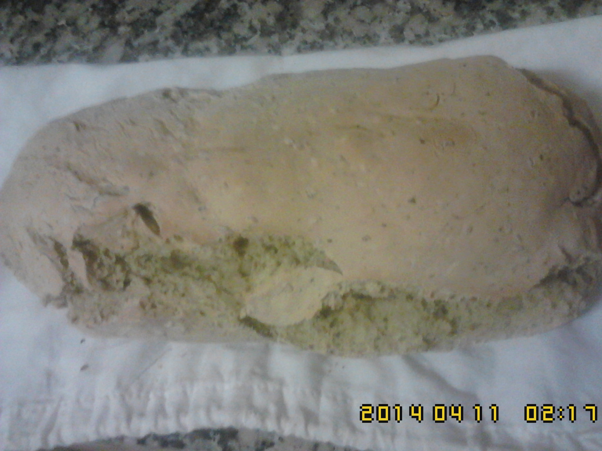 2) 350g de farinha T65,hortelã,salsa,coentros, curtado aos bucados,azeite,fermento padeiro.15s-V6.