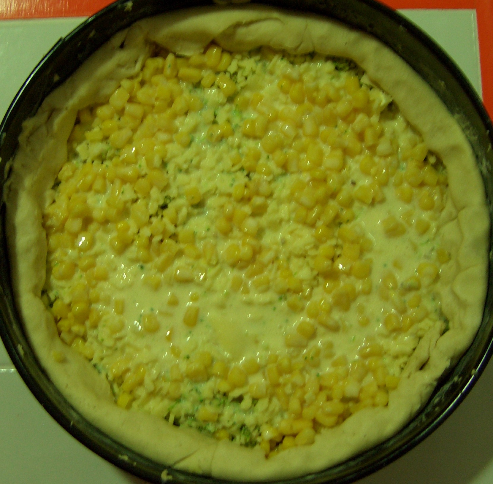 Comece por fazer a massa colocando todos os ingredientes no copo 15 seg, vel.6. Forre a tarteira. Sem lavar o copo, pique na vel.5 o queijo e os brócolos separadamente e deite sobre a massa. Coloque de seguida o milho e os ovos batidos com o iogurte 15 seg, vel.5. Leve ao forno a 180 ºC ate estar dourado.