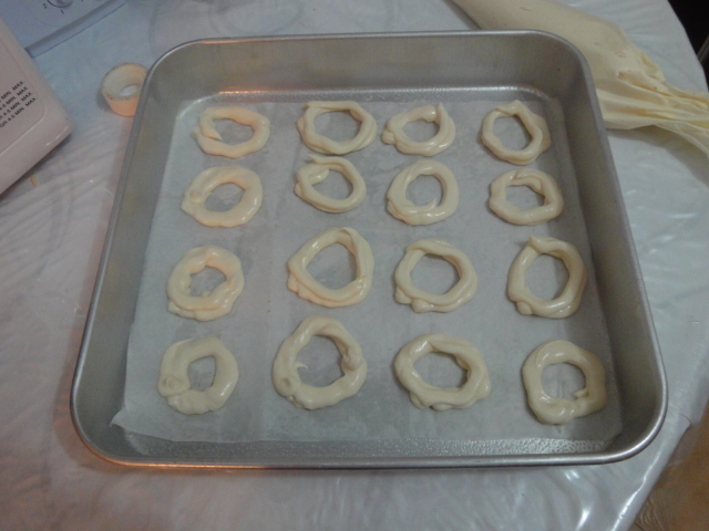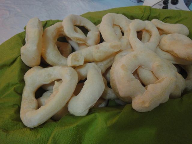 "Tampa fechada" trabalhando coloque o ovo pela tampa.coloque a massa em um saco de confeiteiro(bico medio) distribua a massa em um tabuleiro untado fazendo desenho de sua preferencia.leve ao forno ,medio pré-aquecido,por cerca de 20 minutos,ate ficarem bem sequinho e levemente dourados