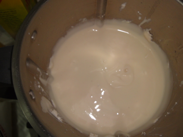 no copo coloque o leite ,o óleo,sal,vinagre e o polvilho liga 10 seg vel 4.depois adicione a água quente.10 seg vel 3.