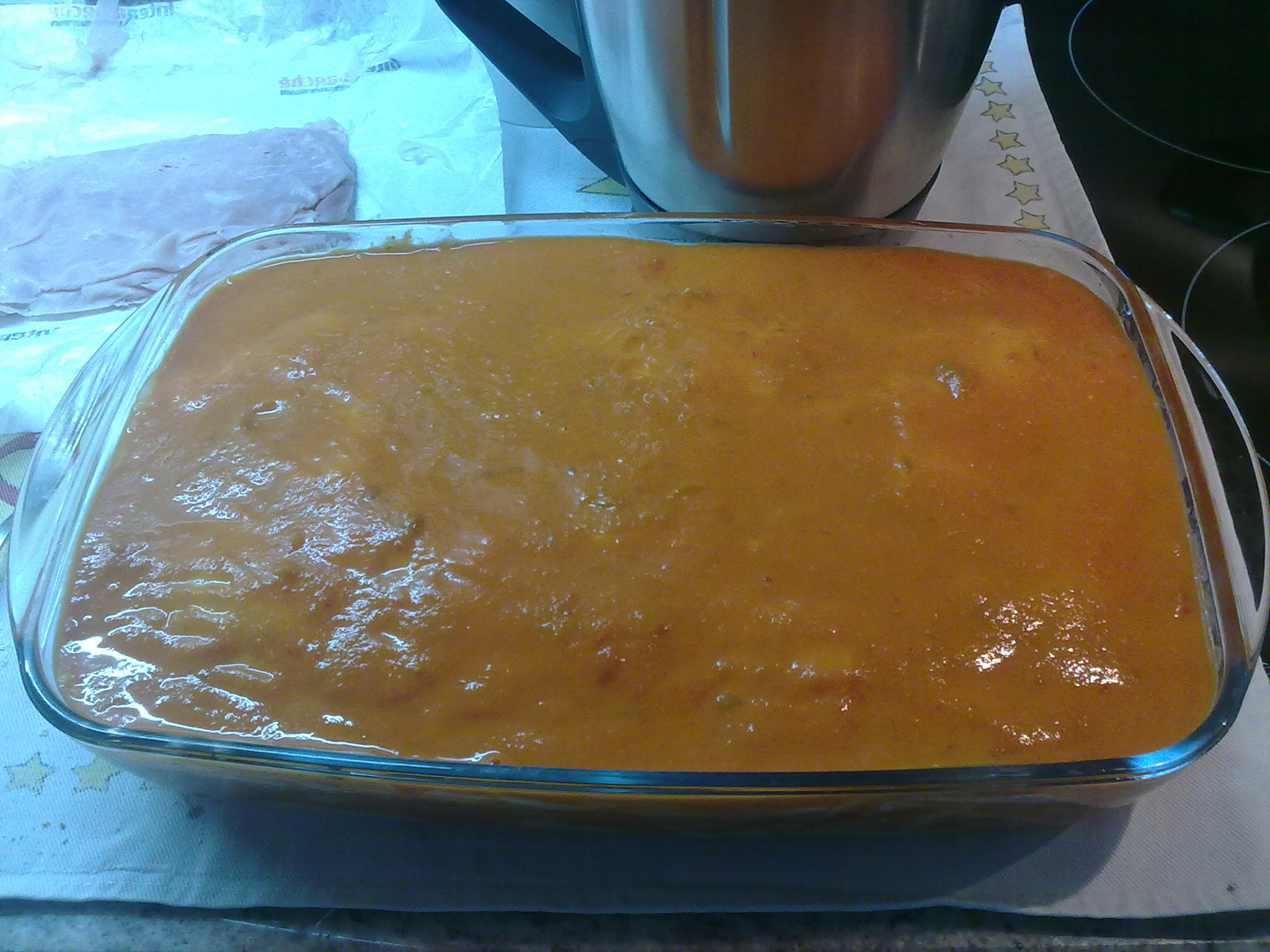Por fim colocar por camadas, massa, fiambre, queijo e molho de tomate e novamente massa, fiambre, queijo e molho e vai ao forno cerca de 30 a 40 min.