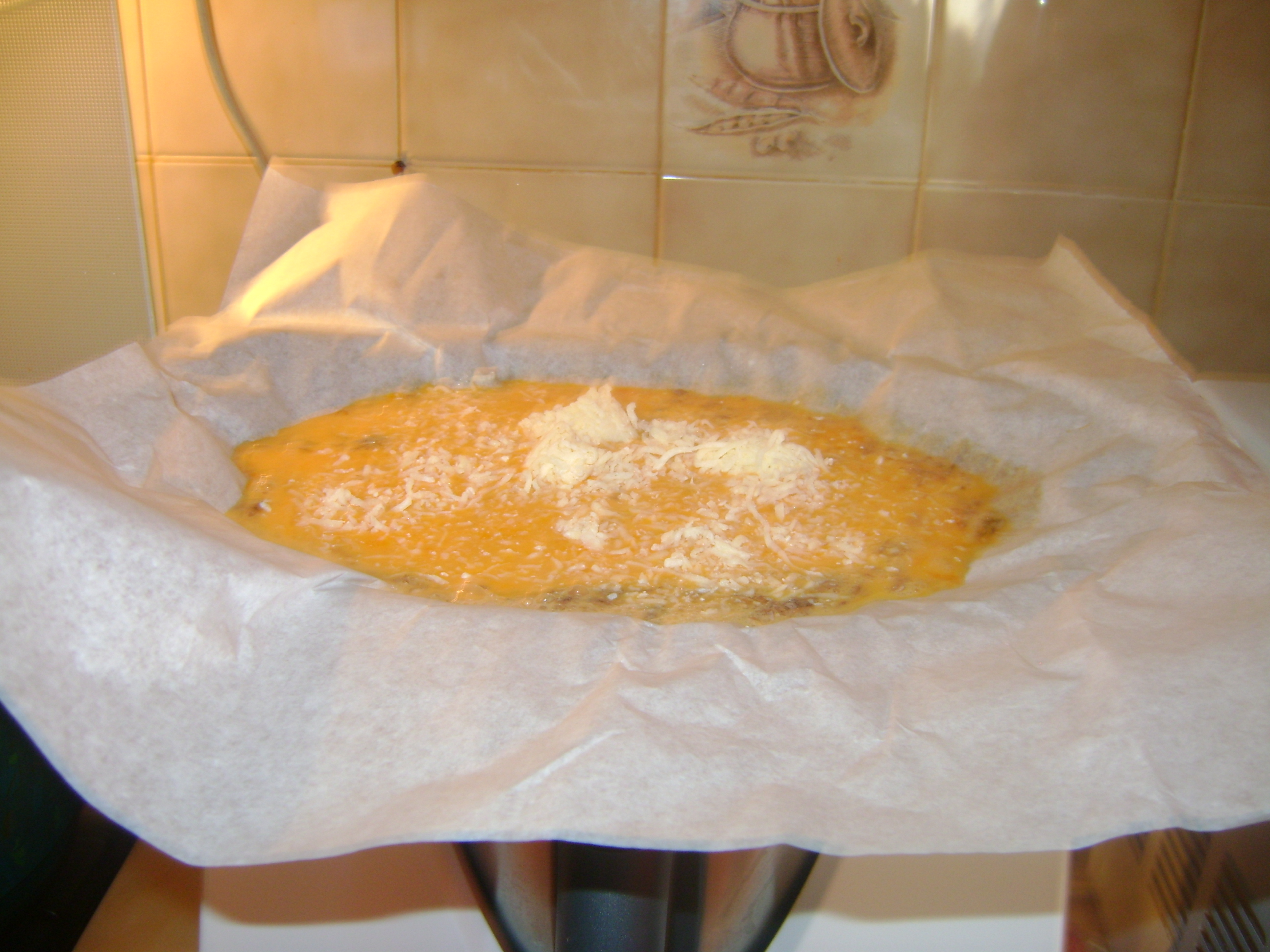 O COPO DA BIMBY COLOCA AGUA ATÉ A MEDIDA MAXIMA PROGRAMA VAROMA VEL 2 30 MINUTOS COLOCA A VAROMA MAIS BAIXA EM CIMA DA BIMBY SEM A TAMPINHA COPO MEDIDA E COLOCA UM POUCO DE SPRAY DE ÓLEO PARA A OMELETE NÃO AGARRAR E SE PUDER VIRAR CONFORME VAI COZENDO! NUMA TAÇA MISTURA OS OVOS TEMPERA COM O SAL E OS OREGÃOS COLOCA O PAPEL VEGETAL POLVILHA COM SPRAY DE ÓLEO DEPOIS OS OVOS BATIDOS E POR CIMA OS QUEIJO CONFORME MOSTRA A FOTO QUANDO VIR QUE ESTA NAS PONTAS JÁ COZIDA VAI VIRANDO (CUIDADO PORQUE A TRAVESSA VAROMA MAIS BAIXA NÃO ENCAIXA TÃO BEM COMO A MAIS ALTA E PODE VOLTAR SE EU FUI TIRANDO PARA FORA E VIRAVA EM CIAM DA BANCADA! ACOMPANHADA COM UMA SALADA DE PEPINOS ACABADOS DE APANHAR.