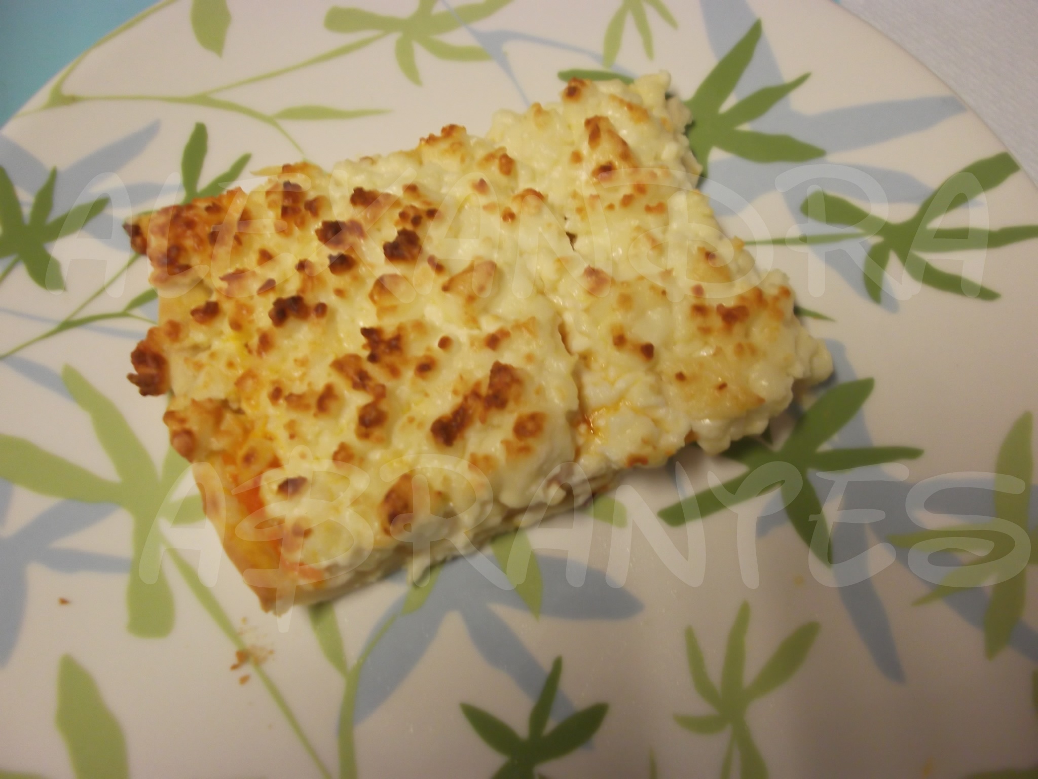 leva-se ao forno pré-aquecido a 180º C até ver que está a massa crocante e tostado por cima.