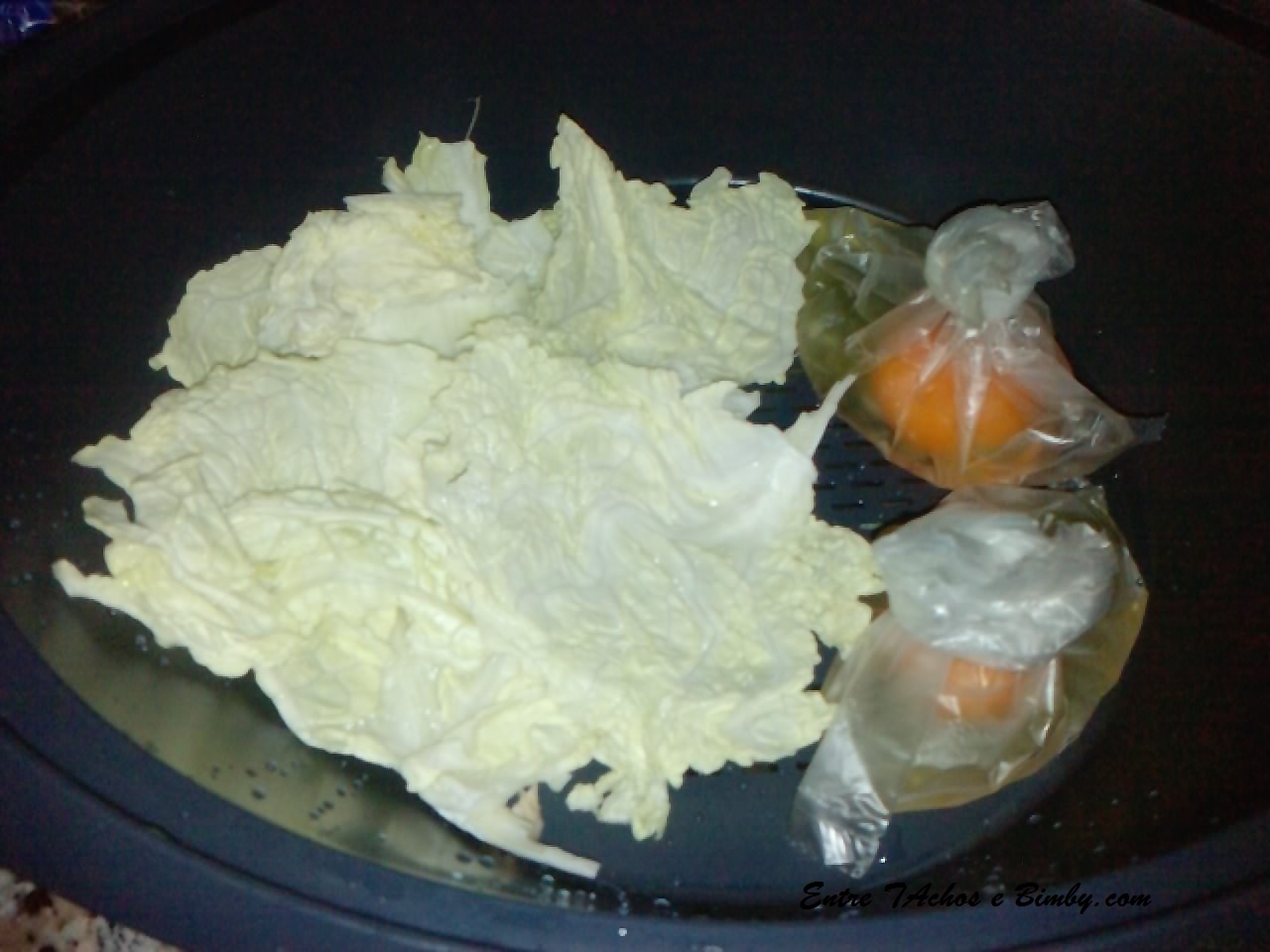 2.Coloque a couve lombarda e os ovos na Varoma e reserve.