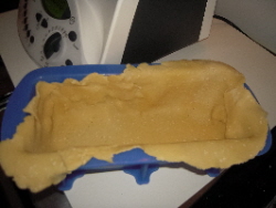 Retire a massa, estenda sobre uma superficie polvilhada com farinha e estique com o rolo até ficar lisa. Coloque a massa na forma que desejar. ( usei a das tortas, mas poderia ser redonda, fica bem na mesma) e pique o fundo com um garfo.