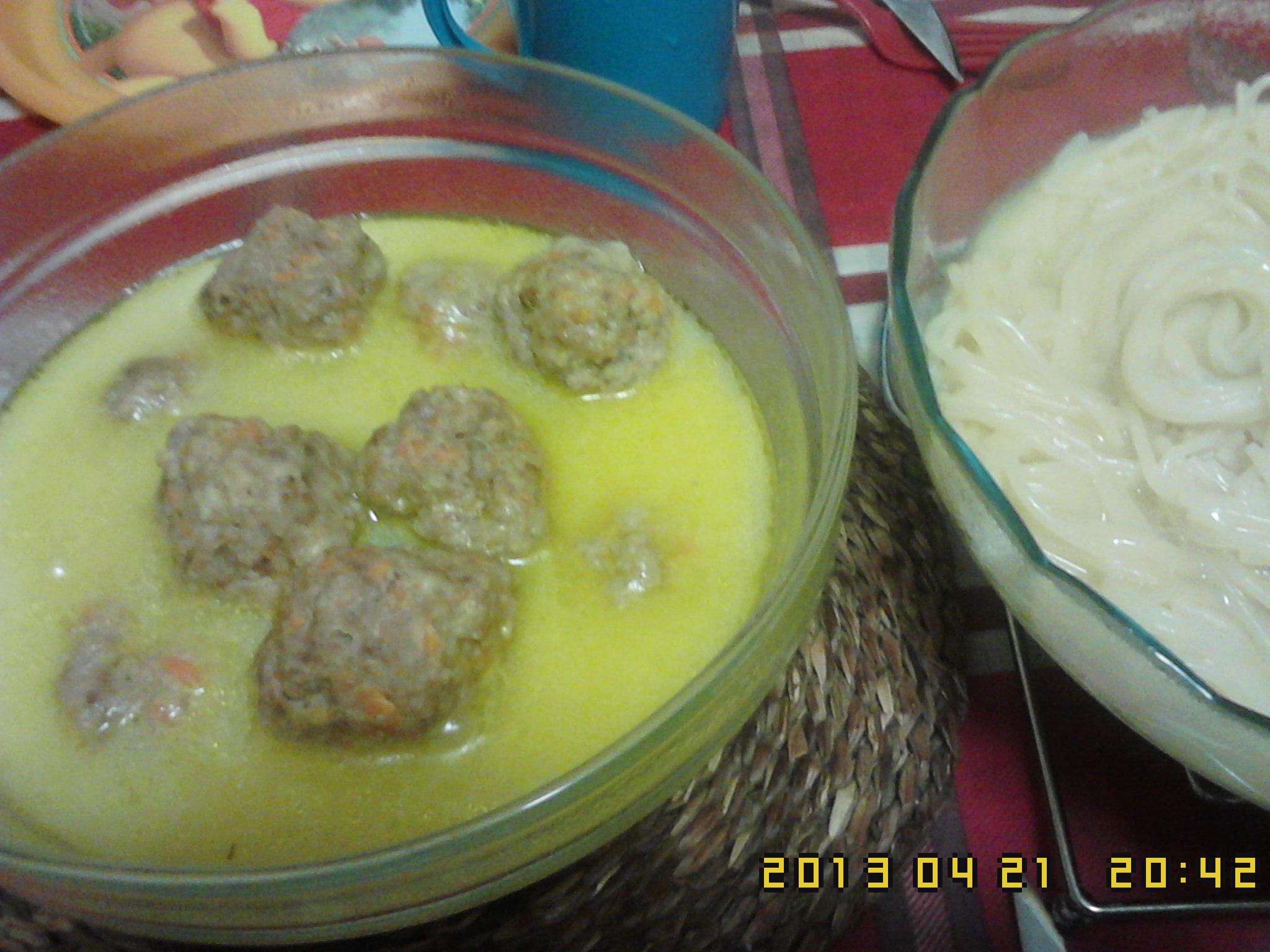 Primeiro;Prepare o preparado.Pique o pão,alhos,coentros e a metade da cebola.Reserve,para um prato.A seguir,pique a cenouraV/5,5s.Deixe a cenoura no copo,junte as duas carnes,sal e o preparado,só 200g.O resto,deixe no prato.V/5,1m.Retire,a carne do copo e comece a fazer,bolinhas a seguir passe as bolas pelo resto do preparado,ponha do prato.Ponha no copo,800ml,de água.Ponha o cesto com as almondegas a folha de loiro no meio delas.Se sobrar,ponha no congelador.Exprema a laranja e o limão,ponha por cima das almondegas,a seguir o azeite,por cima delas.V/3,25m,varoma.Pode servir com esparguete ou com arroz.Bom apetite.