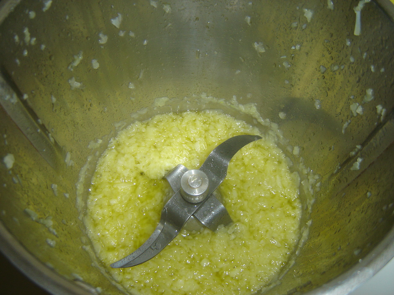 -Coloque no copo a cebola, o alho, o azeite pique 5seg / Vel5.
