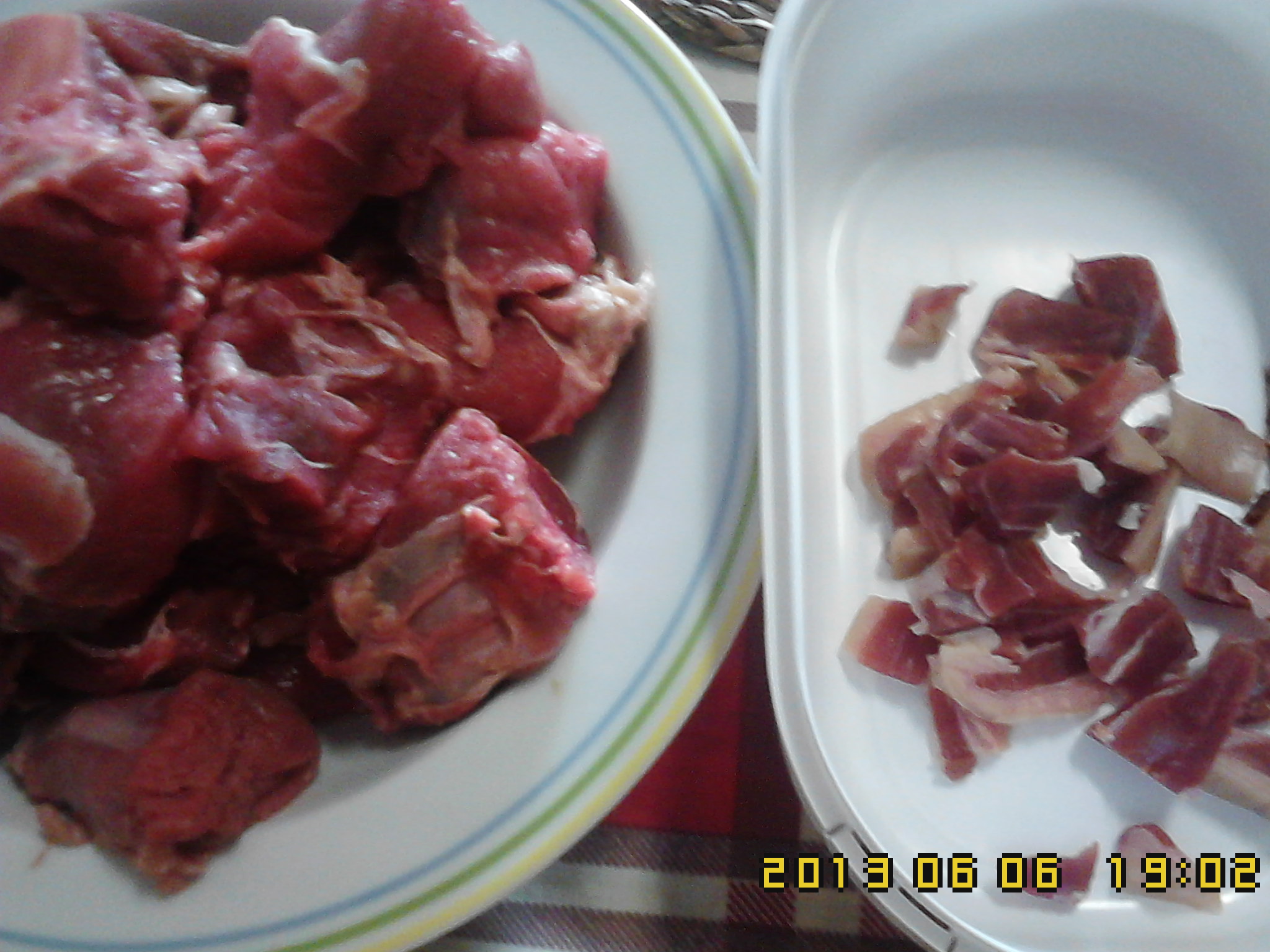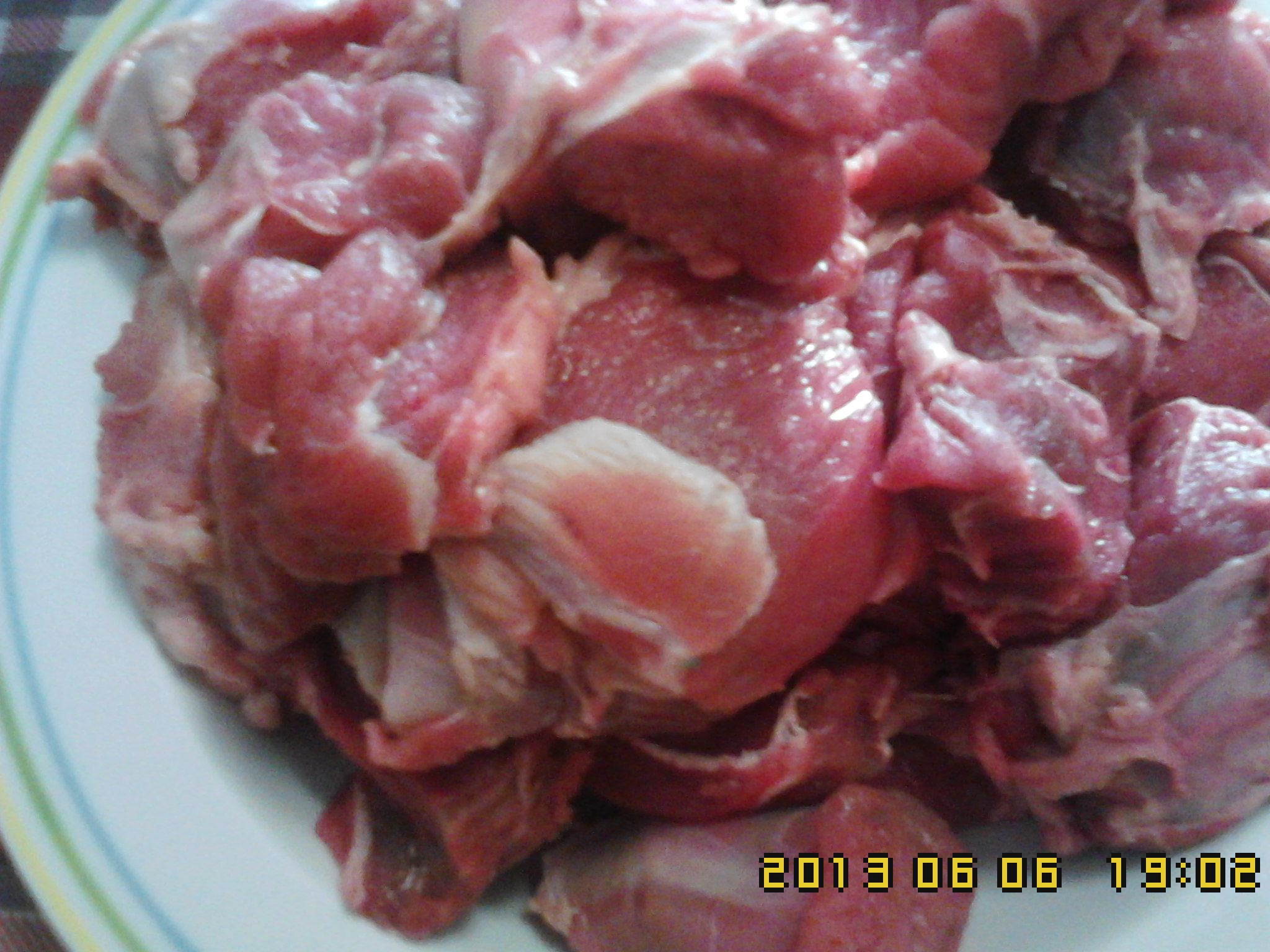 1-Um kilo de carne de vaca,para estufar.Comece a cortar a carne em quadrados.Ponha num recipiente,com sal.2-Ponha a cebola,tomate com a pele,alhos,azeite.Pique 5s-V5s.Depois,5m-V1-varoma.3-Coloque no copo um litro de água,ponha a carne temperada e cortada aos qudrados,juntamente,com a folha de loiro,caldo de knorr,as laranjas exprimidas(sumo),pitada de cravinho moido,Velocidade