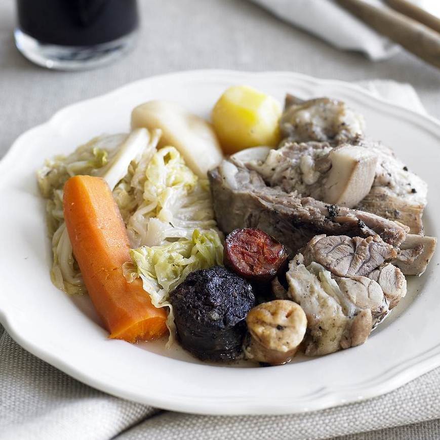 5. Pese o caldo reservado no copo e complete com água até às 800 g. Adicione 2 rodelas de chouriço de sangue, rectifique o sal, coloque o cesto com o arroz e programe 20 min/100°C/vel 3. Sirva o cozido com o arroz.