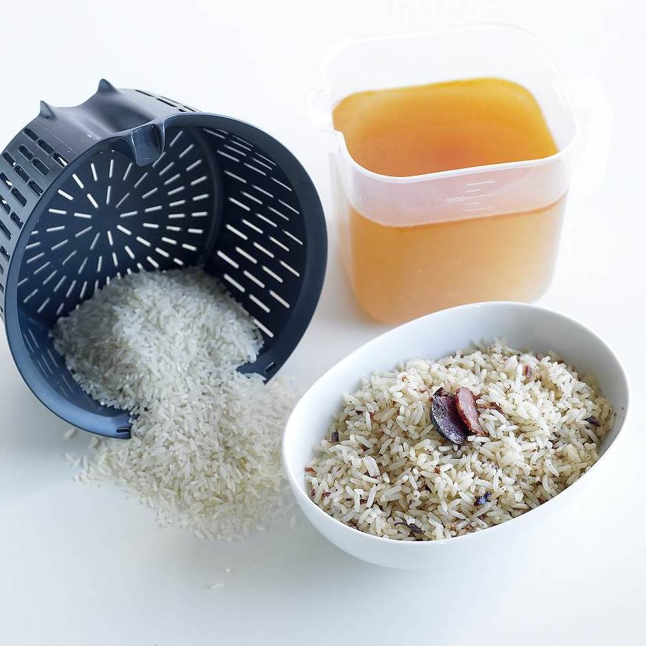 4. Retire os ingredientes do copo e reserve o caldo para o arroz.